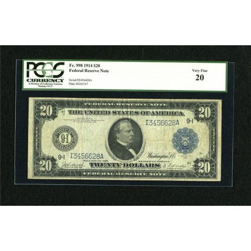 Fr. 998 $20 1914 Federal Reserve Note PCGS Very