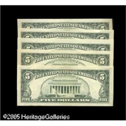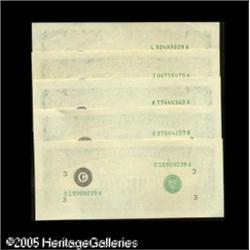 <B>Fr. ? A Partial District Set of Missing Face Printing $5 Feds.</B></I> Five examples of this striking error type make up this lot. The Philadelphia, Chicago, and Dallas examples are perfect <B>Gems,</B></I> and the Minneapolis and San Francisco notes are nice <B>XF-AU</B></I> pieces. 5 notes Lot:15073