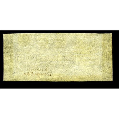 <B>Fr. TN-14a Hessler X83C $10 March 25, 1815 "Act of February 24, 1815" Treasury Note New.</B></I> Two light corner folds are found on this exquisite two-signature plate letter G remainder that is given a rarity by Hessler of R-6, 13 - 30 known. The upper and bottom margins are also slightly inside the frame lines. The note has also been nicely taken care of during the nearly two hundred years since it was adorned with the signatures of Saml. Clarke and Edward Fox. The countersignature line of the Register of the Treasury is blank. This is an important foundation note for starting a collection of these intriguing notes from the Second War of American Independence.