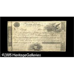 <B>Fr. TN-8 $100 Act of December 26, 1814 Treasury Note Very Fine.</B></I> This is an example of the variety that has the penned date of "Feb 11, 1815" and is filled in, but missing its three signatures. Friedberg mentions two known, and that includes this note. Also, the Ford sale did not contain an actual example, only a punch cancelled proof. This crispy note was once folded into fourths, but it did not stay long in that mode. It also has a couple of more folds that run just inside the top and bottom edges. A little other handling is noticed that includes an approximate half-inch tear in the upper right-hand corner, and a single pinhole through the watermarked paper. This is a great collecting opportunity tonight. Lot:16721