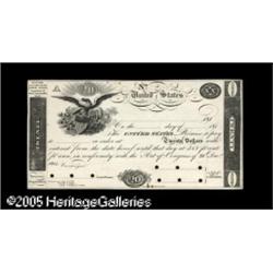 <B>Fr.TN-9 $100 Act of December 26, 1814 Treasury Note Crisp Uncirculated, PC.</B></I> This proof, mounted on card stock, has been punch cancelled with nine small holes along the signature lines, and the back exhibits signs of once being mounted. The census for proofs of this Friedberg number currently rests at three, with this example being the plate note in <I>U.S. Essay, Proof and Specimen Notes</B></I> by Gene Hessler (notice the two small spots at bottom center.) Lot:16723