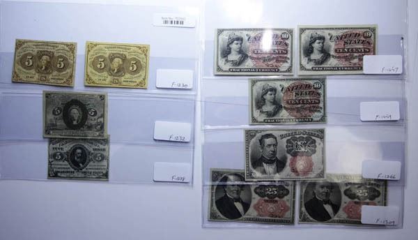 Fractional Currency, 10 pieces. Fr. 1230 2 Fine & AU, Fr. 1232 AU, Fr. 1238 Unc, Fr. 1257 2 EF & AU, Fr. 1259 AU, Fr. 1266 Unc, Fr. 1309 2 Unc.