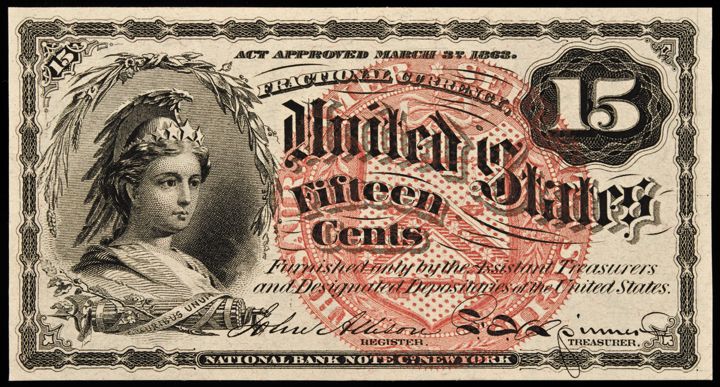 Fractional Currency, FR-1267 4th Issue 15¢ Columbia