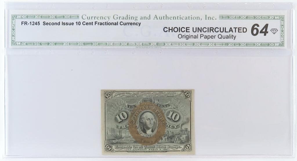 Fractional Currency: Second Issue 10 Cent. FR# 1245. CGA Certified CU64.