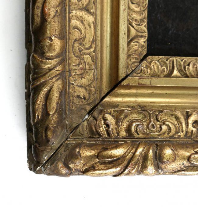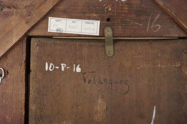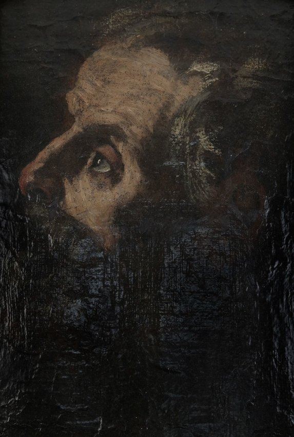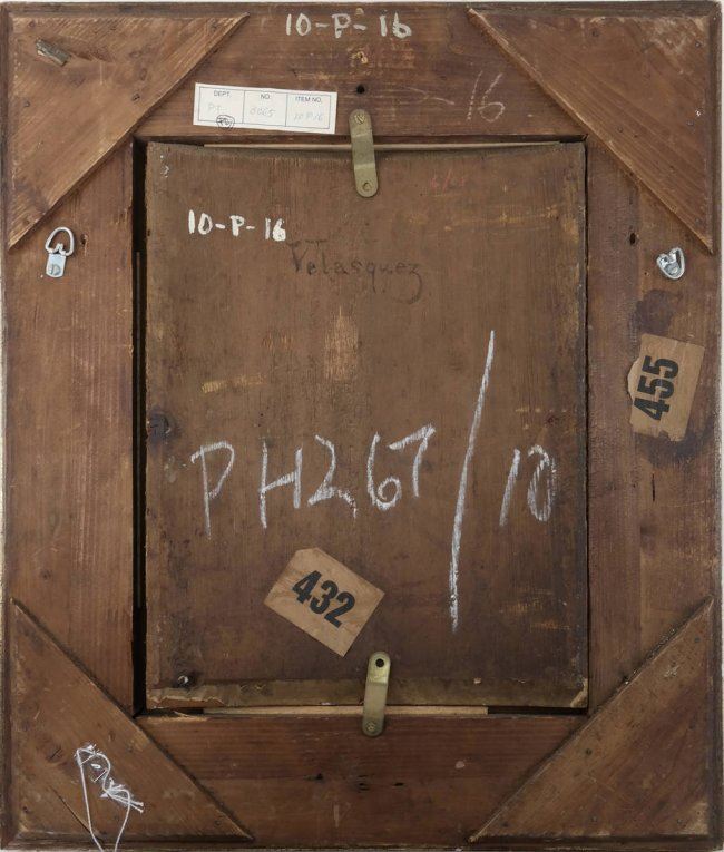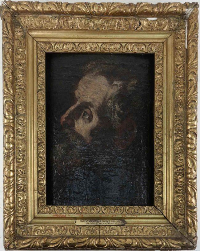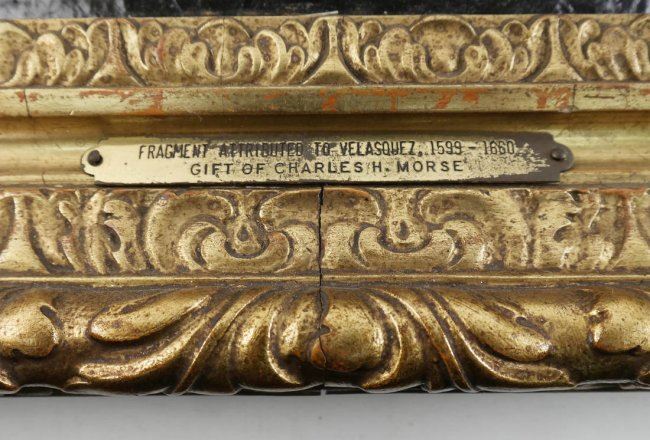 Gilt framed fragment with a man's profile after Velasquez. Plaque on bottom of frame reads "Attributed to Velasquez, 1599-1660. Gift of Charles Morse". [Sight: 12 1/4" H x 9 1/2" W; Frame: 20" H x 16 5/8" W].