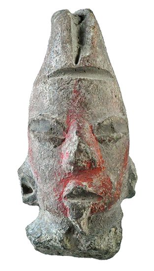 Fragmento cabeza. Cultura Olmeca (800-1200 d.C.). Cerámica policromada. Altura 7,0 cm.