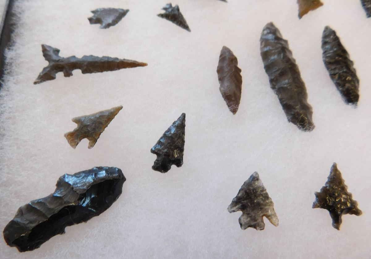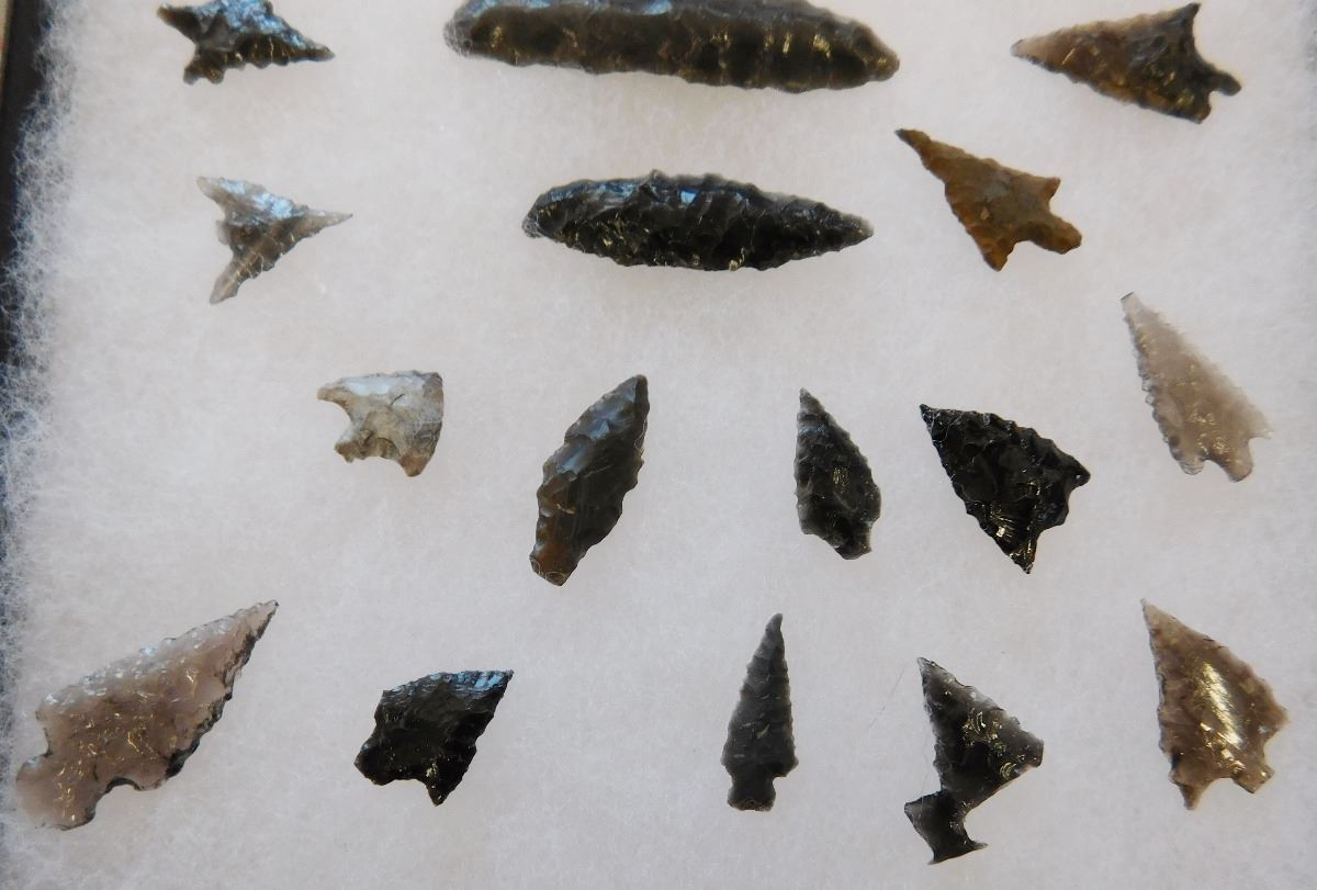 Frame of Obsidian Points, pre-historic items. Consisting of obsidian, these points range from 1/2" to 1 1/2". From Klamath Falls, Oregon. Frame not included. Condition: Some points have nicks, see images. Shipping: $18.50.