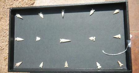 Frame of 15 gem quality Missouri Bird Points. Range from one half inch to one and one half inches. Gem Quality. Shipping $15.00