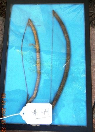 Frame with pair of miniature bows. Bows approximately one is 8 inches and the other is 9 inches. Shipping $25.00 Good condition