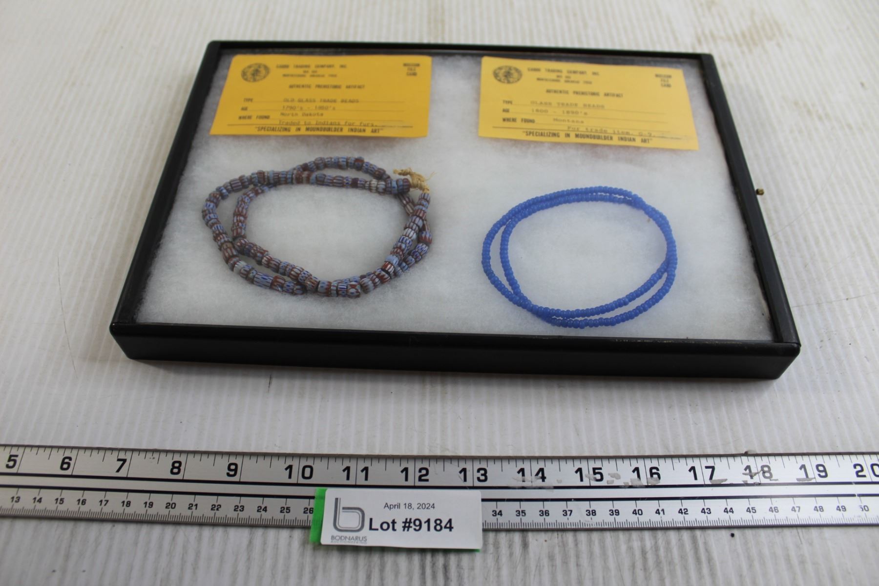 Framed 1790s-1890s Glass Trade Beads - 12 1/2" x 8 1/2"