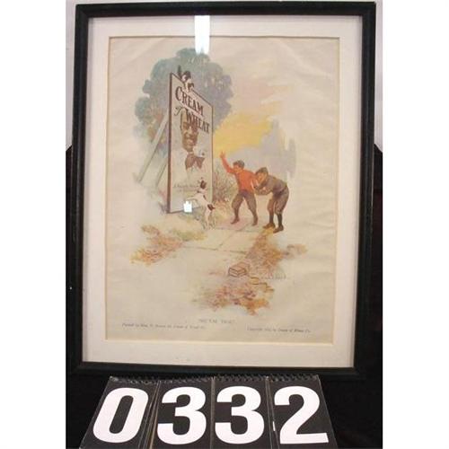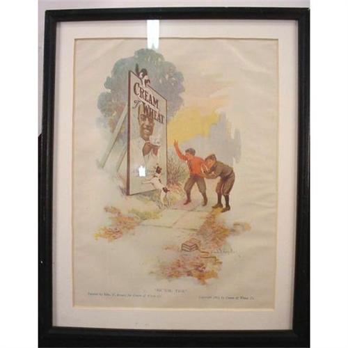 Framed 1914 advertisement by cream of wheat " Sic' um , tiige "from the reverse of the front cover of Neelecraft magazine may 1922.in very good condition 11-1/2" x 14-1/2" 1Lb . [05]