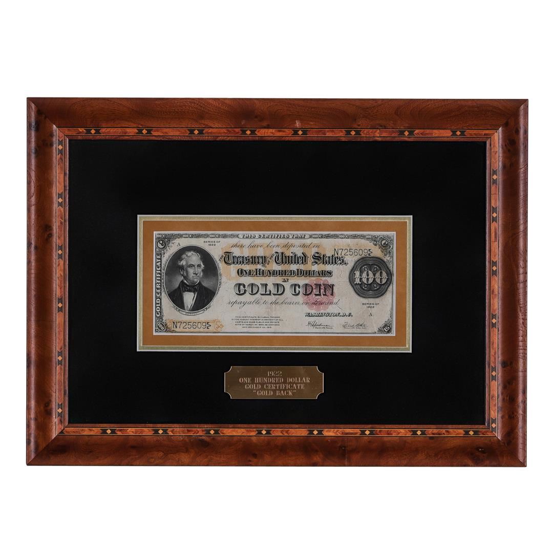 One Framed 1922 $100 Gold Certificate Note.