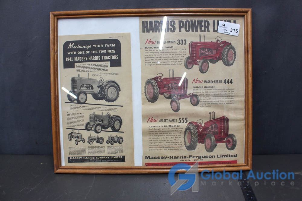 Framed 1941 and 1956 Massey Harrison Ferguson Cut Out Advertising