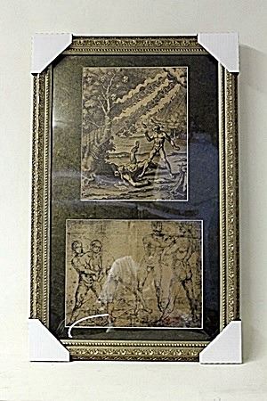 2-in-1 Framed Engraving unkown artist and title. Both Mixed Engraving printed in the late 1800's to early 1900's. All have the Mixed stamp from the Museum. These are the only surviving images from a flood that distroyed the Museum in 1914