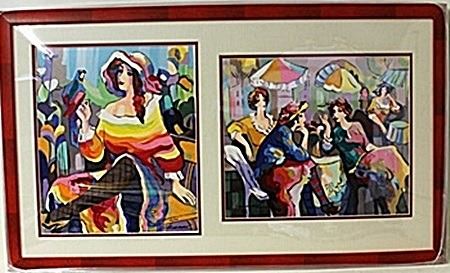 Authentic Michael Kerman 2-in-1 Framed Signed Authentic Lithographs "Lady with a Parrot" and "Conversation" Comes with COA