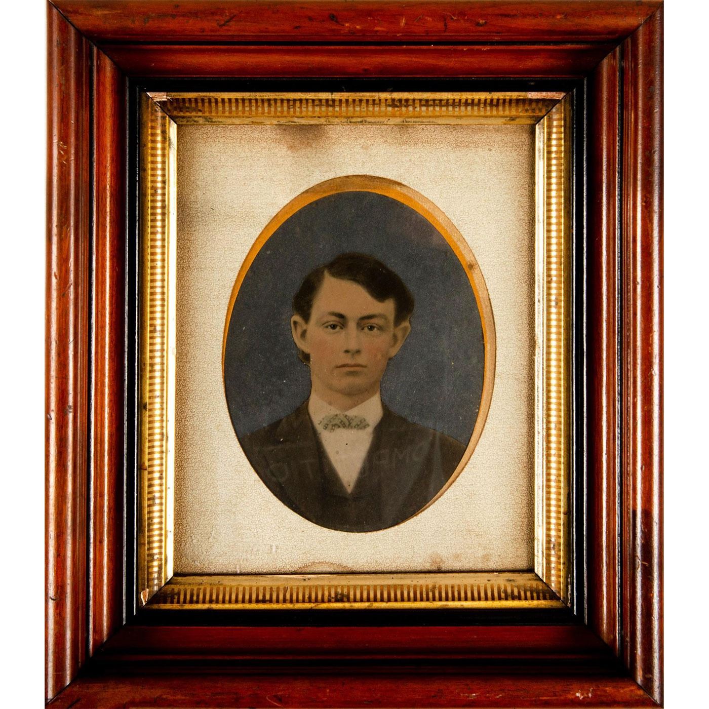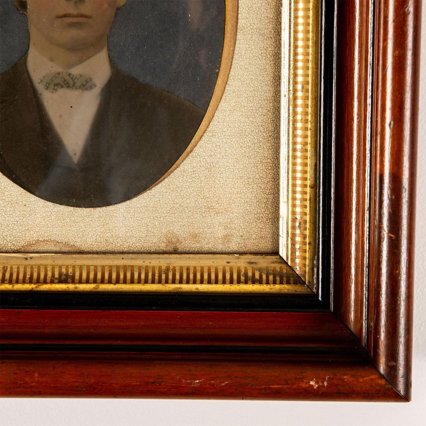 Charming vintage portrait of a young man housed in a walnut wood frame. Age related wear. Portrait: 7.25"H. Frame: 14.25"H x 12.25"W. #vintage