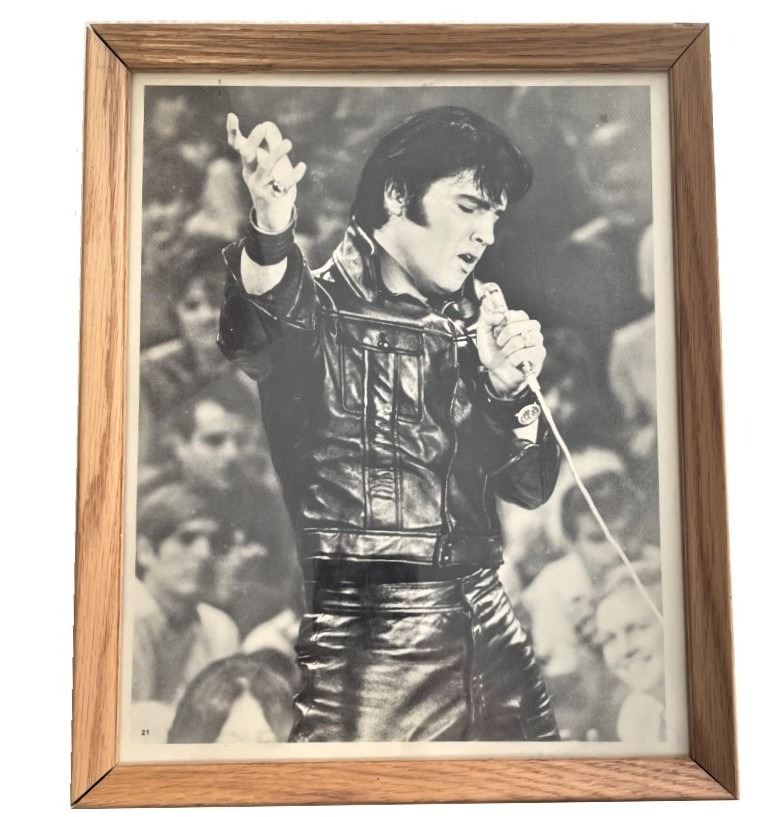 Framed 8" x 10" Black & White Print of Elvis Singing
