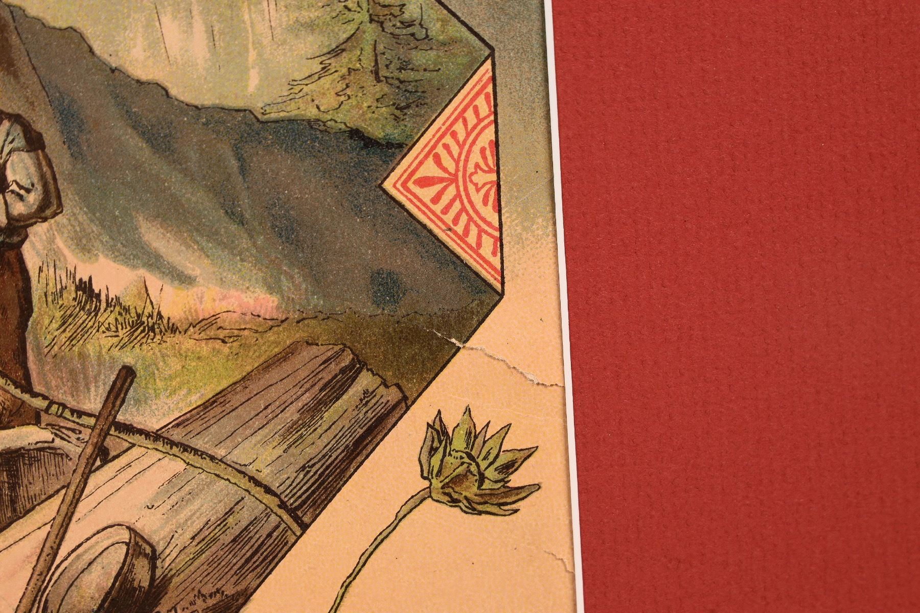 A framed Americana art print, artist unknown. The print is a tribute to American workers, depicting various scenes of laborers building, working in a foundry, and prospecting. Lovely colors and unique composition; definitely check out the photos on this one. Date unknown, but toning suggests some age. Print has a few minor tears. No glass in frame.