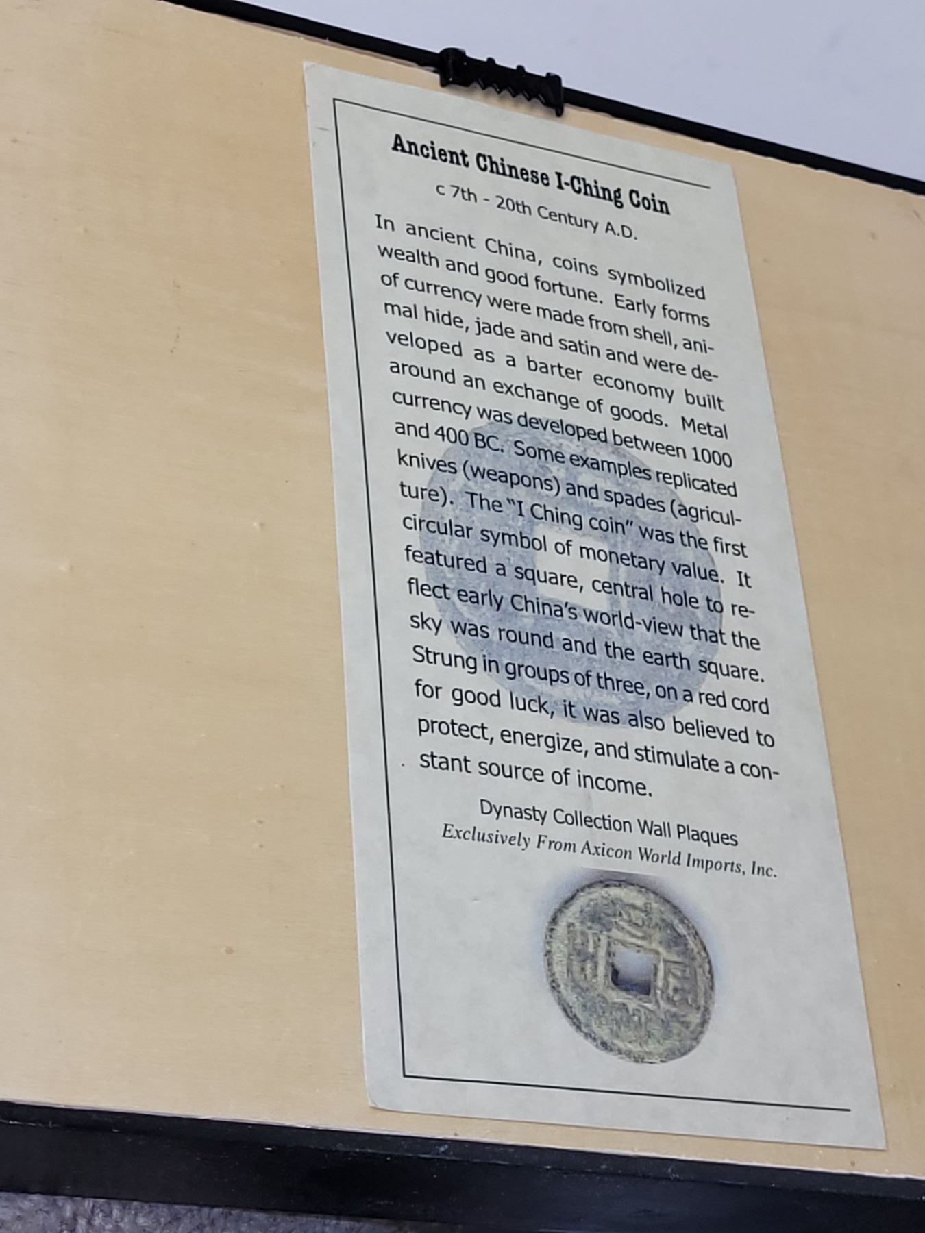 Framed Ancient Chinese Ching Coin In Shadow Box