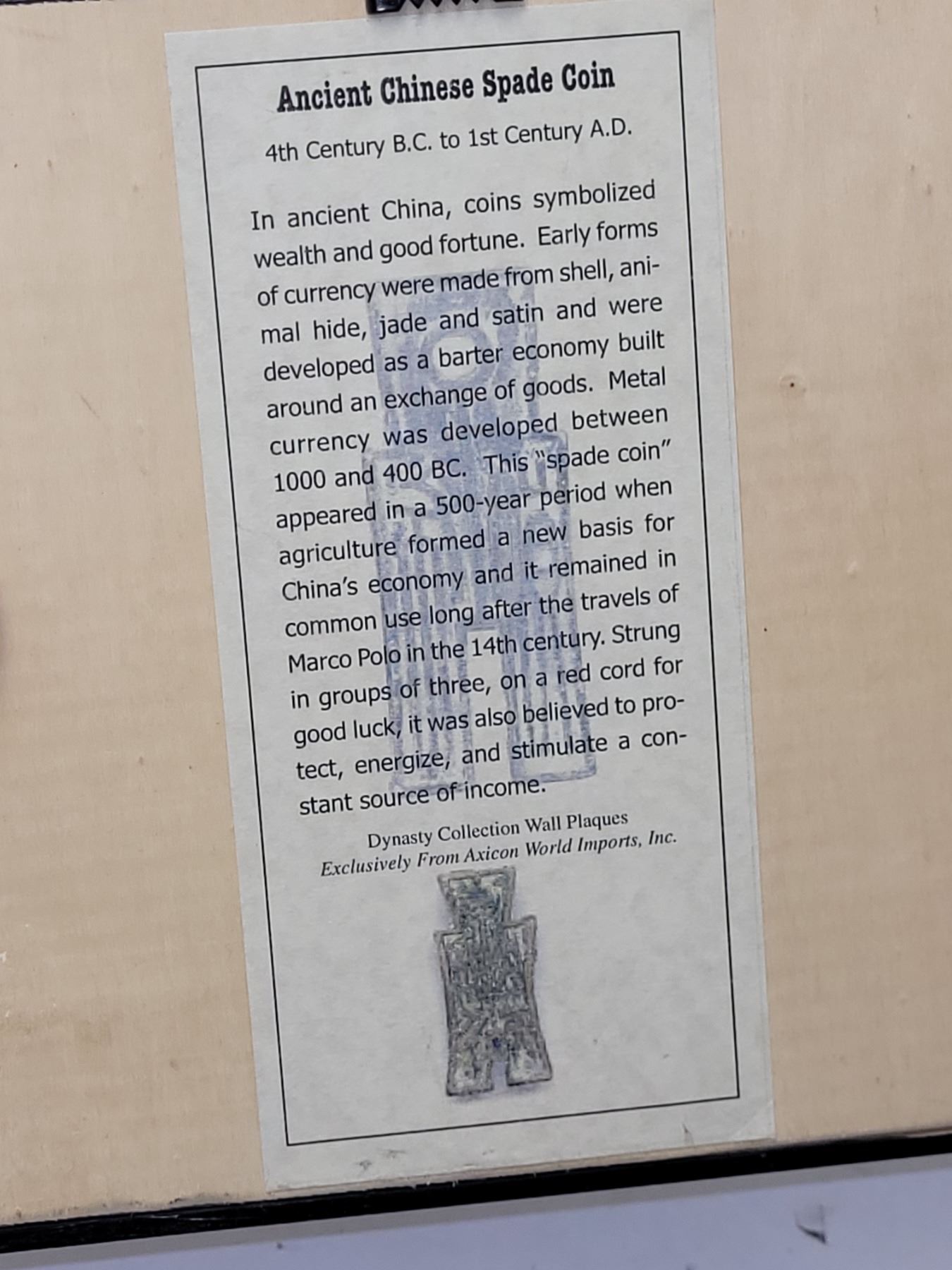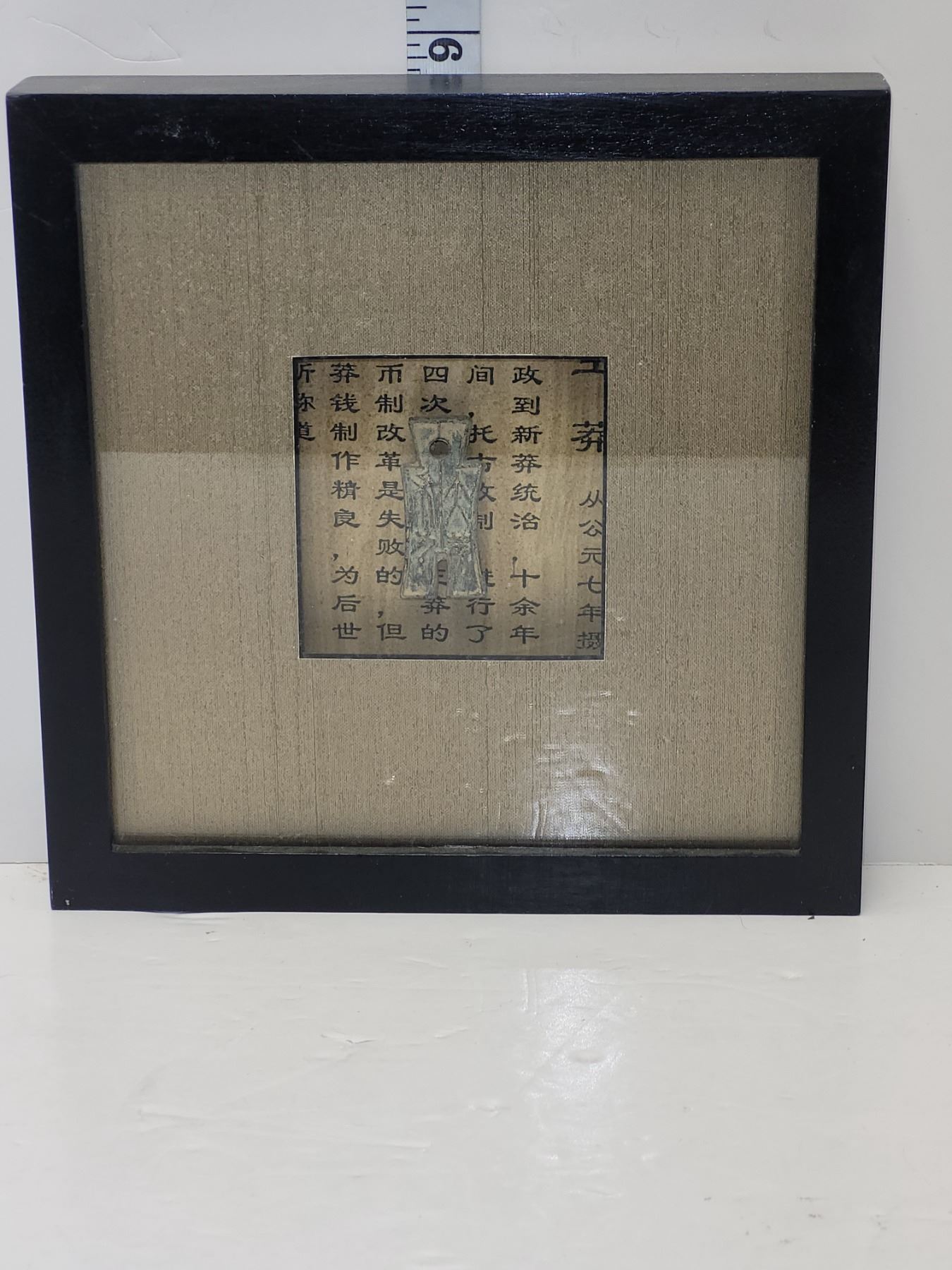 Framed Ancient Chinese Spade Coin In Shadow Box Circa 4Th Century Bc - 1St Century Ad