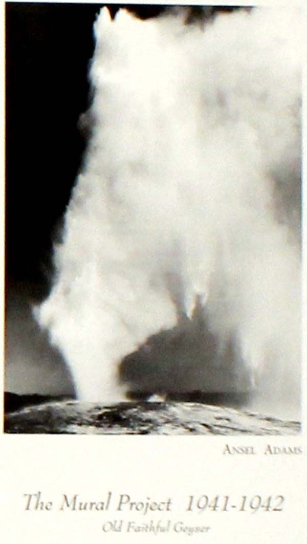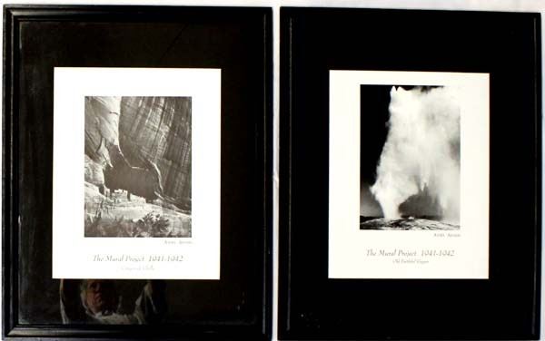 2 Framed Ansel Adams Mural Project Prints 1941-1942, visuals measure 15'' x 19'', both are framed, matted, and under glass, includes ''Canyon de Chelly'' and ''Old Faithful Geyser'', FYI: ''Ansel Easton Adams (February 20, 1902 - April 22, 1984) was an American landscape photographer and environmentalist.''