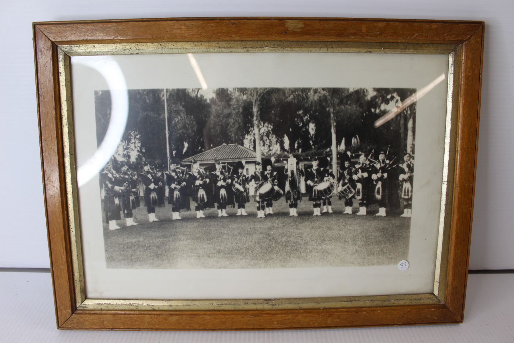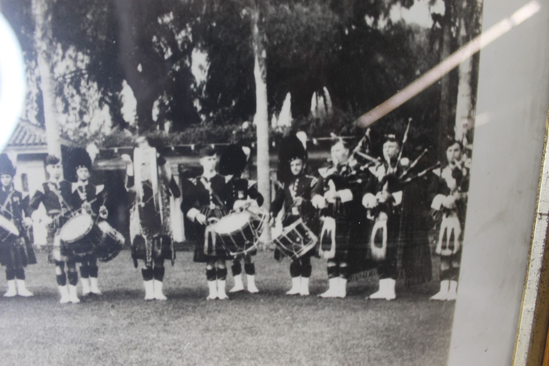 Framed Antique Pipe Band Photograph