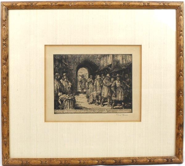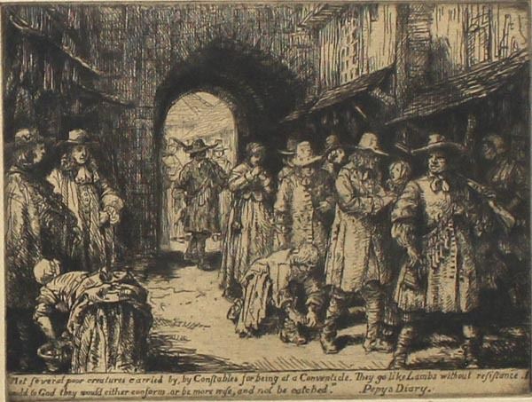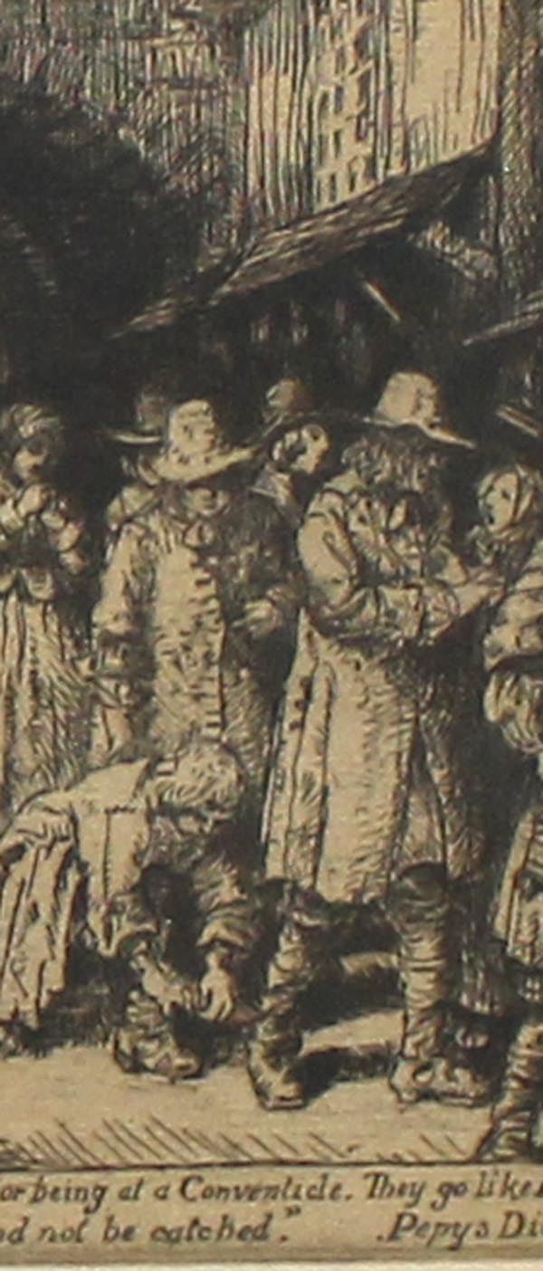 Framed Antique Print from Samuel Pepys Diary, visual measures 7.75" x 5 7/8", overall framed measurement of 16.25" x 18.25", matted and under glass, this is from his entry on Sunday 7 August 1664, there is a signature in pencil, perhaps the illustrator, FYI: "Samuel Pepys 23 February 1633 - 26 May 1703) was an English diarist and naval administrator. He served as administrator of the Navy of England and Member of Parliament and is most famous for the diary he kept for a decade while still a young man. The diary which Samuel Pepys kept from January 1660 to May 1669 ...is one of our greatest historical records and... a major work of English literature, writes the renowned historian Paul Johnson. A witness to the coronation of Charles II, the Great Plague of 1665, and the Great Fire of 1666, Pepys chronicled the events of his day. Originally written in a cryptic shorthand, Pepys's diary provides an astonishingly frank and diverting account of political intrigues and naval, church, and cultural affairs, as well as a quotidian journal of daily life in London during the Restoration."