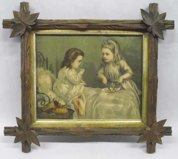Framed Antique Print in Antique Wooden Carved Frame titled ''The Convalescent''. 9.5'' x 5.5''. Buyers Pay Actual Shipping and Handling Charges(see terms and conditions for more information).