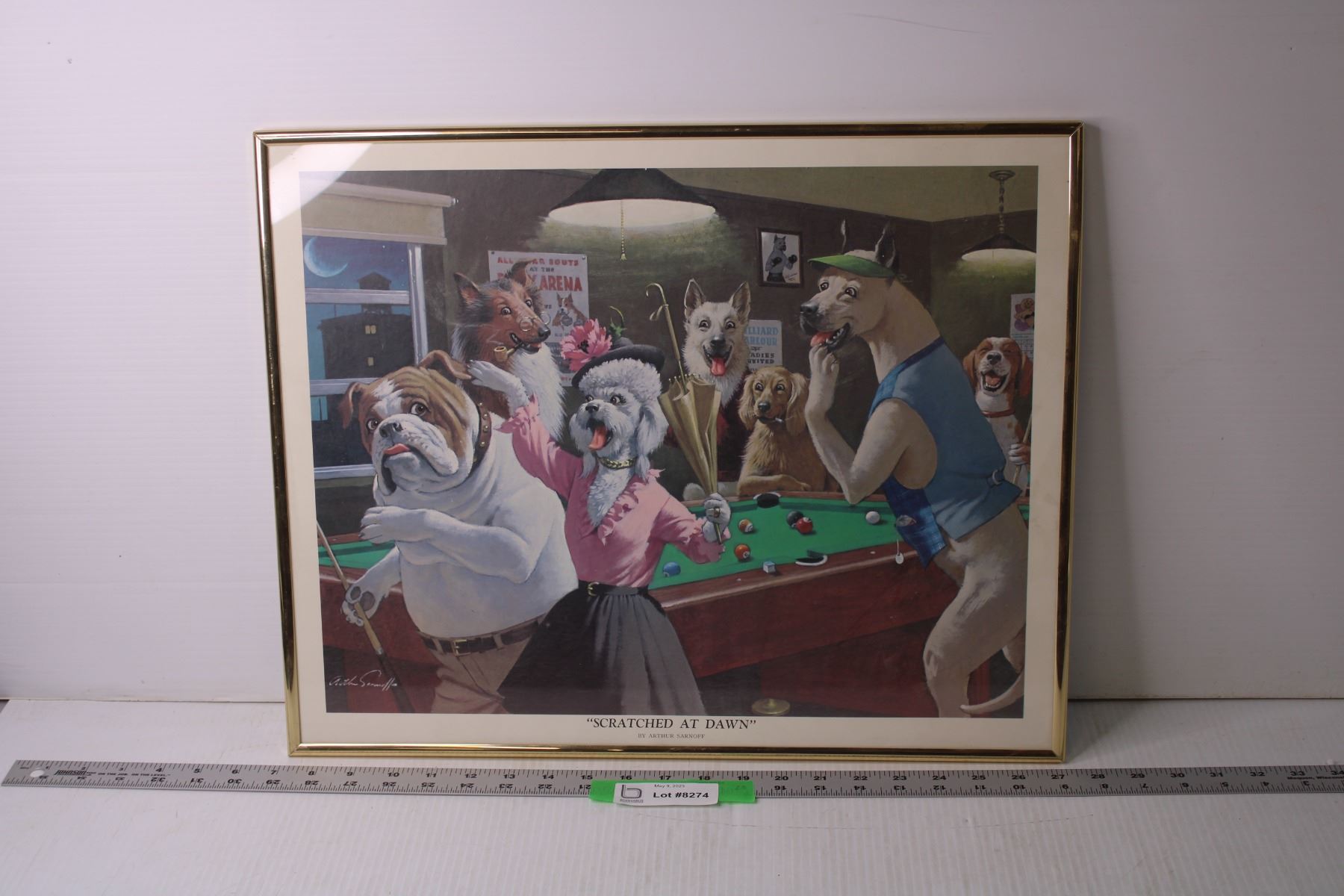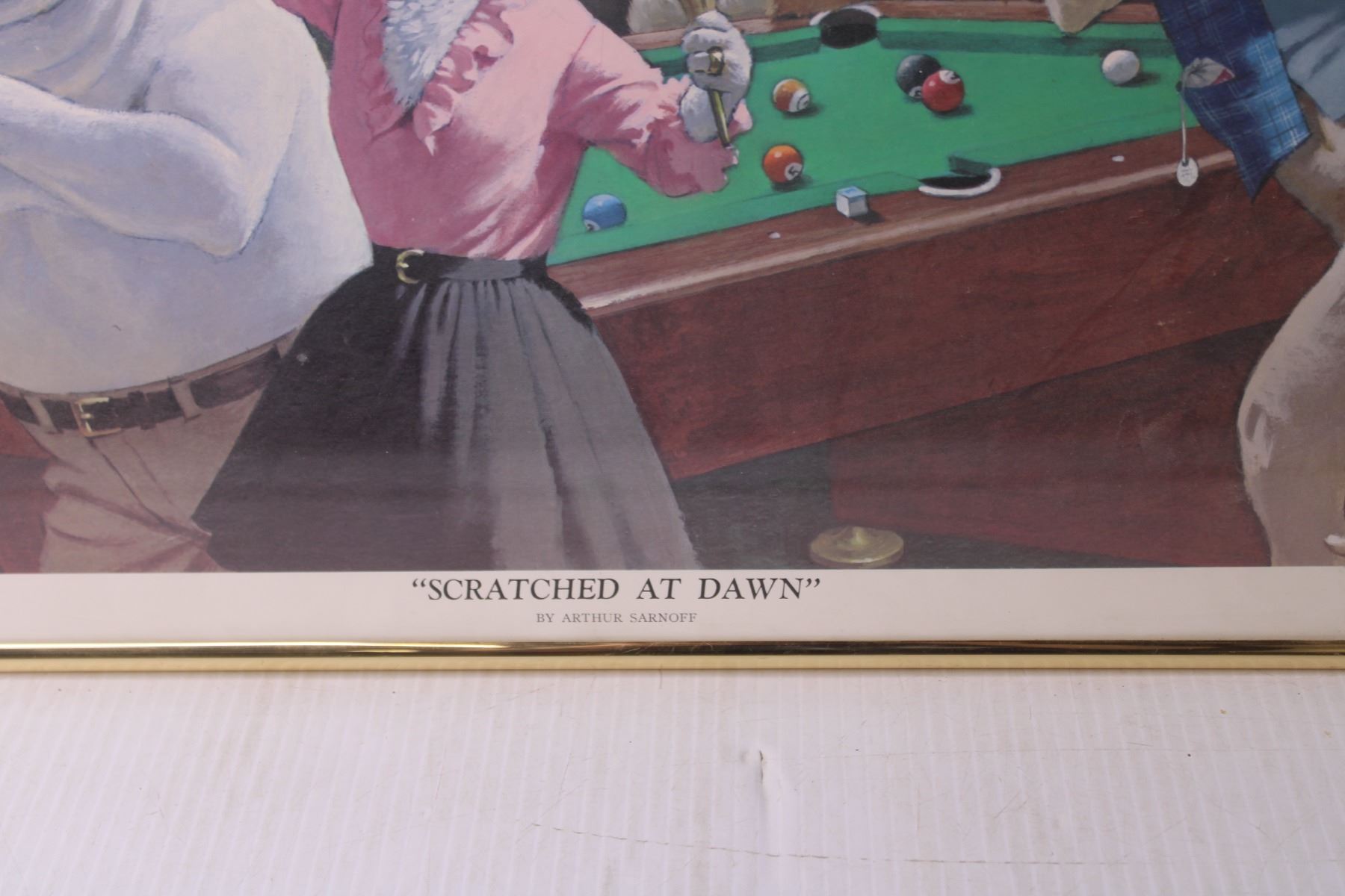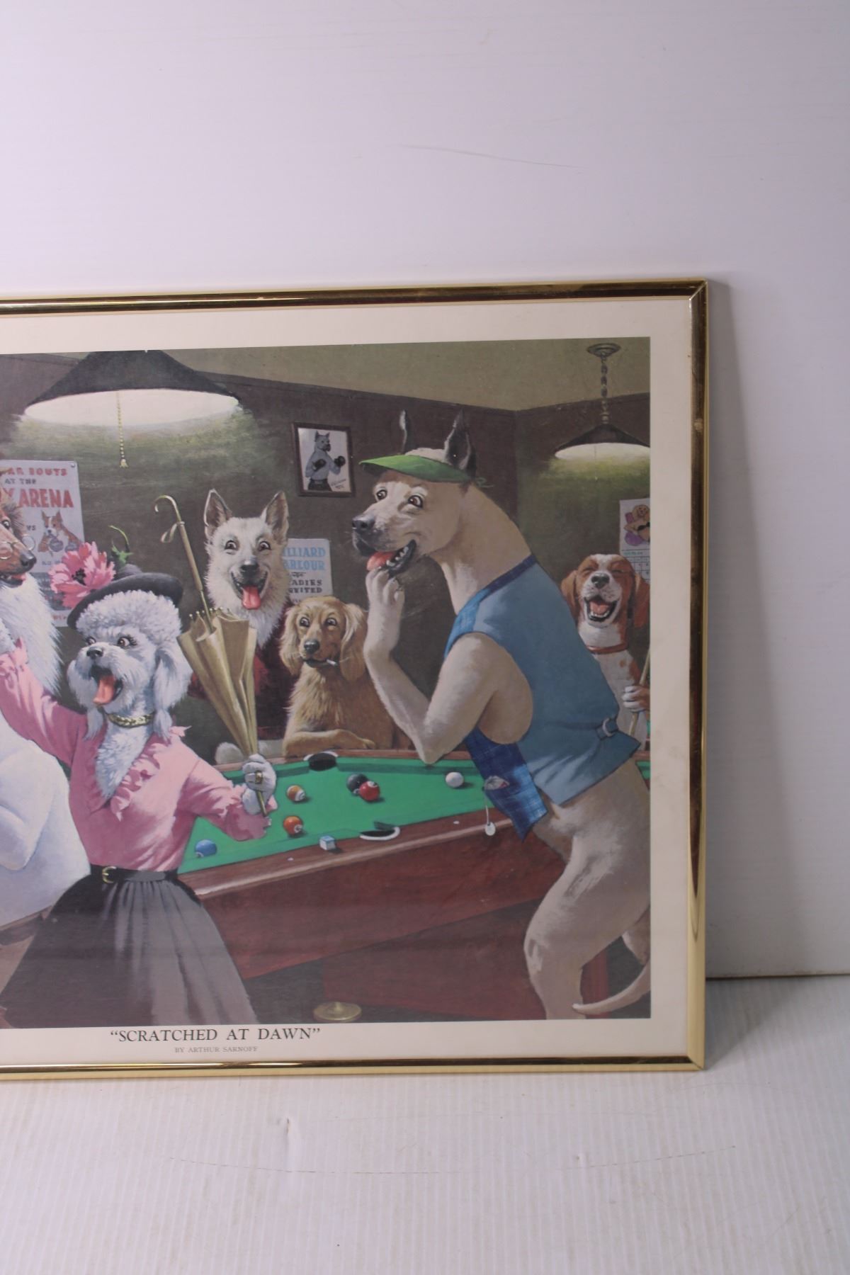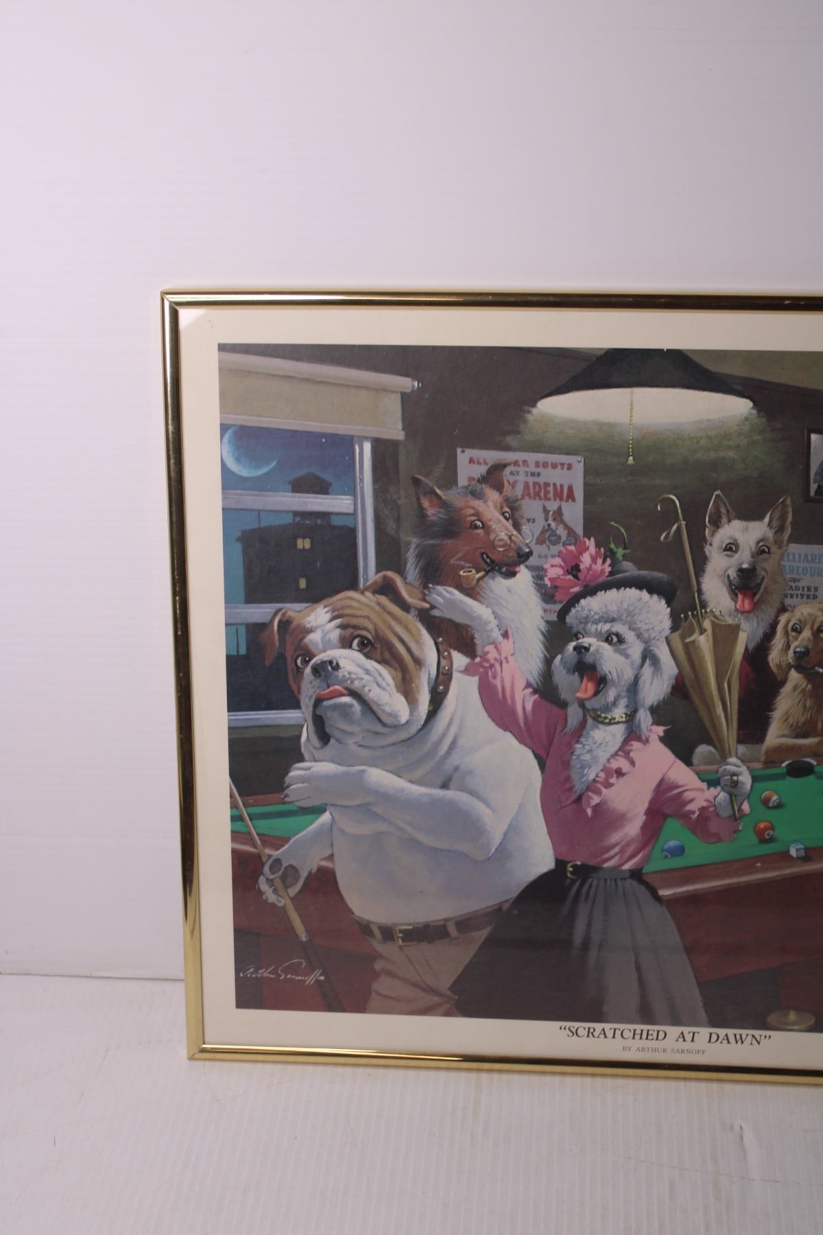 Framed Art of Dogs Playing Pool - "Scratched at Dawn," By Arthur Sarnoff
