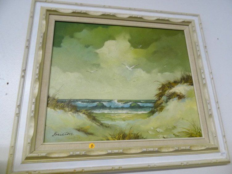 Framed Artist Signed Oil on Canvas Beach Scene