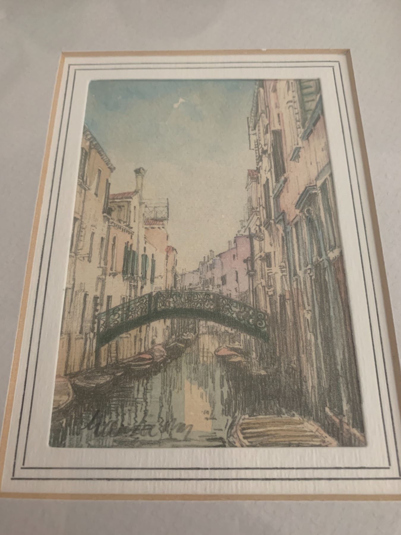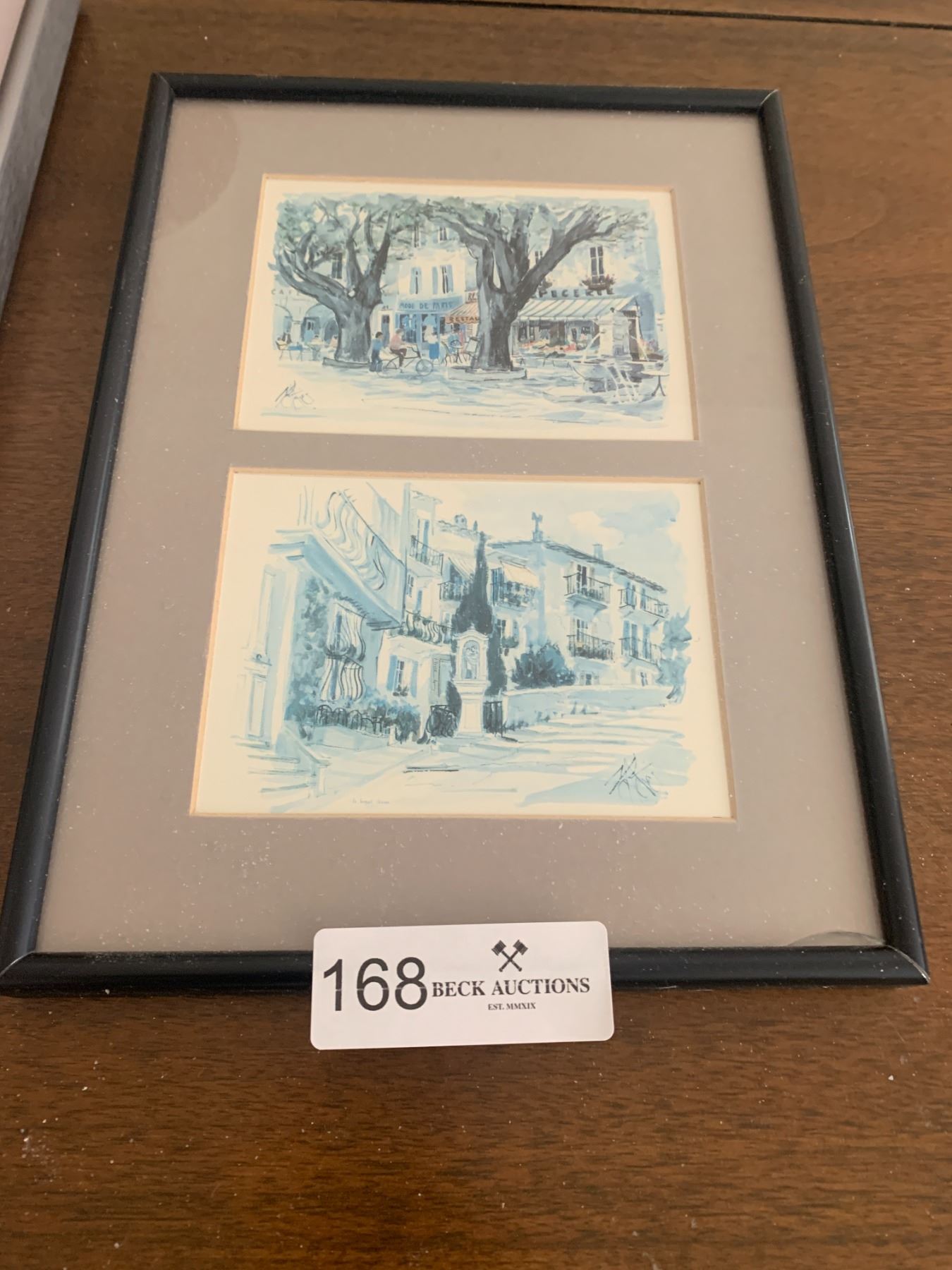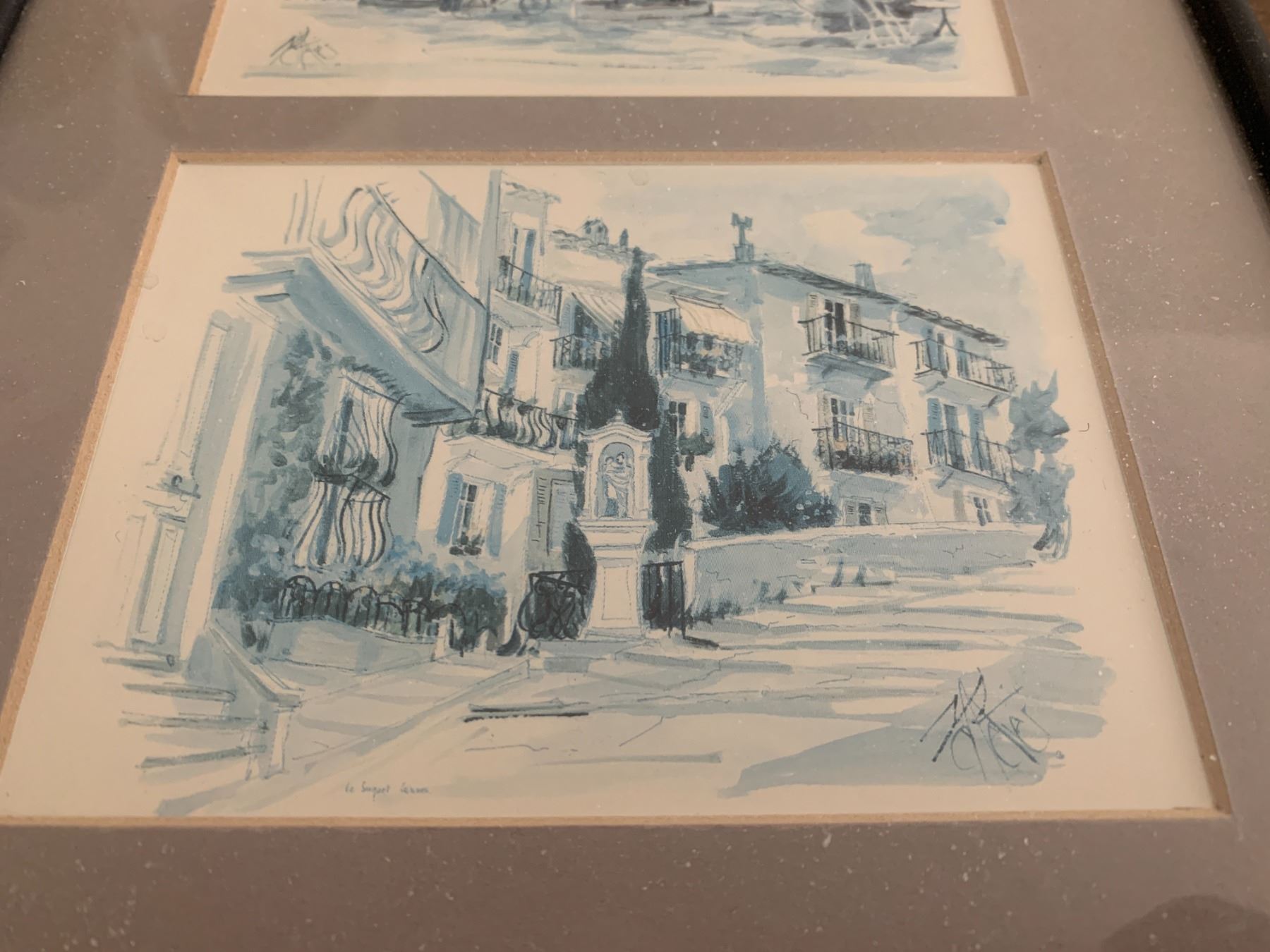 Framed Artwork of Paris and Cannes and 2 x Watercolors of European Canals