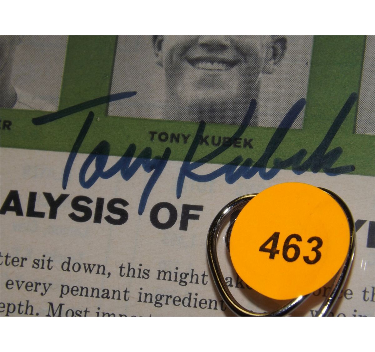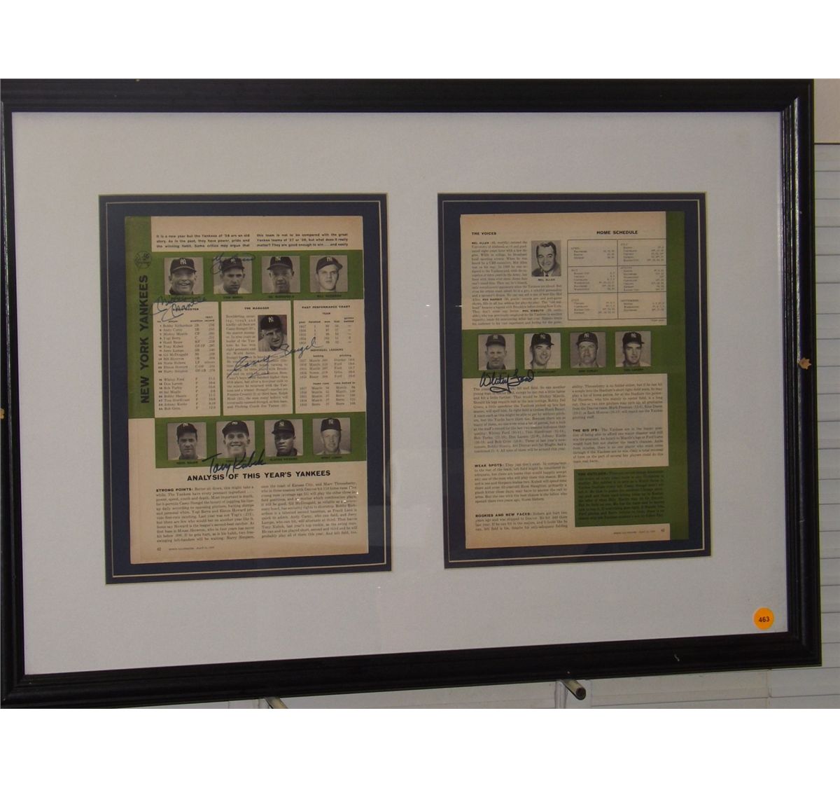 Framed Autographed Yankees Program Dated April 14, 1958. Signed by Mickey Mantle, Yogi Berra, Whitey Ford, Casey Stengel and Tony Kubeck. Appraised or estimated retail value $5000. COA by J. DiMaggio Co. All Sales Final. Please see terms and conditions of auction.