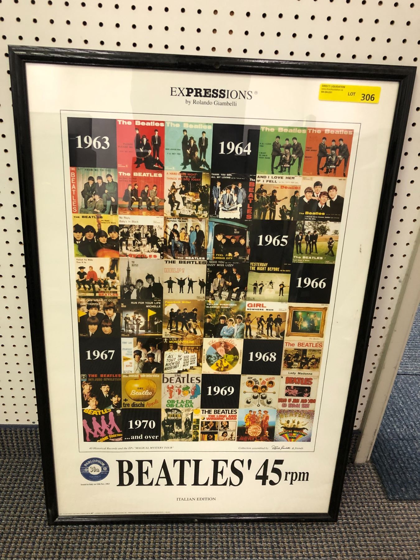 Framed Beatles "45 RPM Print" (Italian Edition Approx. 26x38")