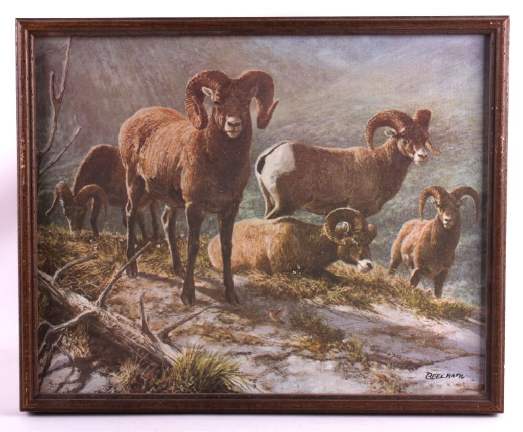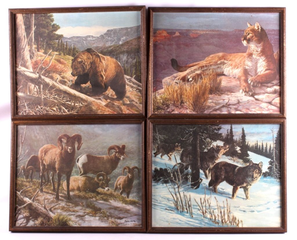 This is a collection of four Beecham wildlife  prints. Each of the prints in done on canvas  and has been framed. All the prints are  marked "Beecham". They are in good condition.  The frames measure 17.5" x 21".