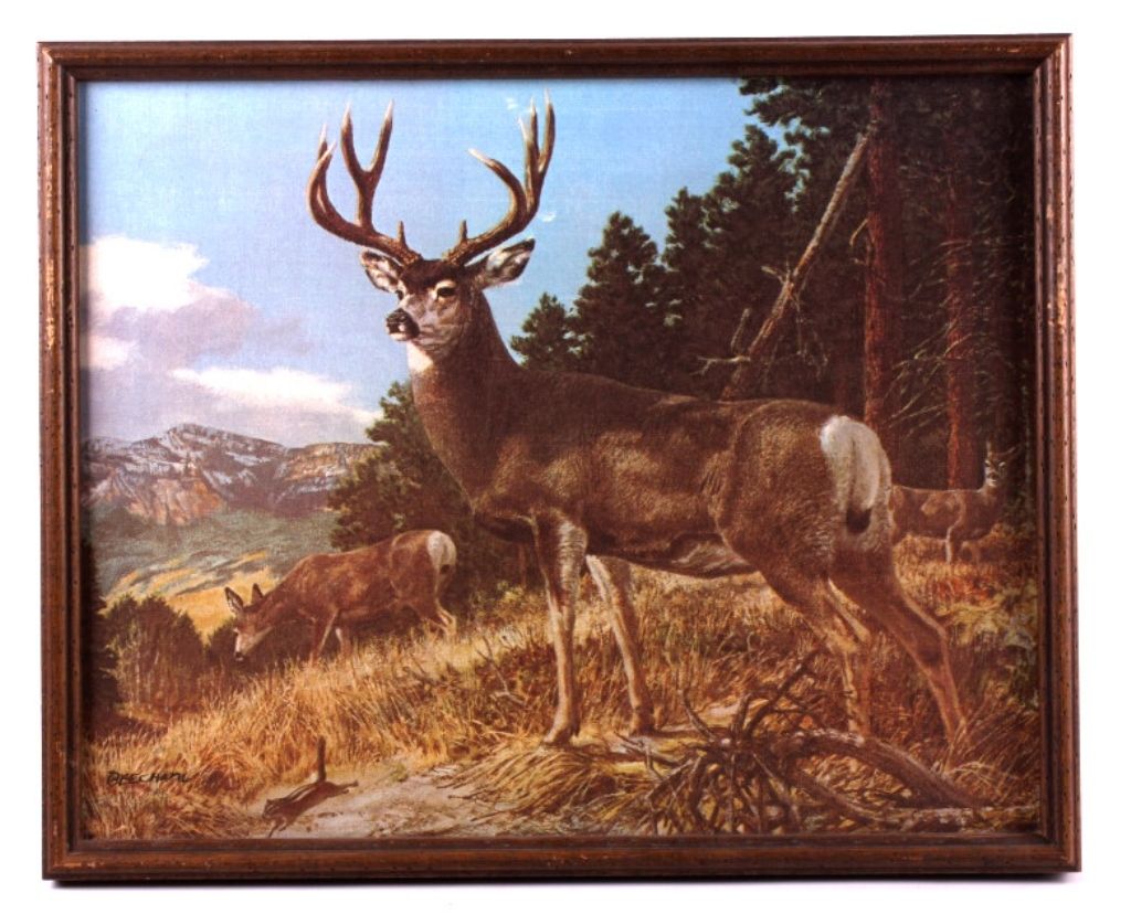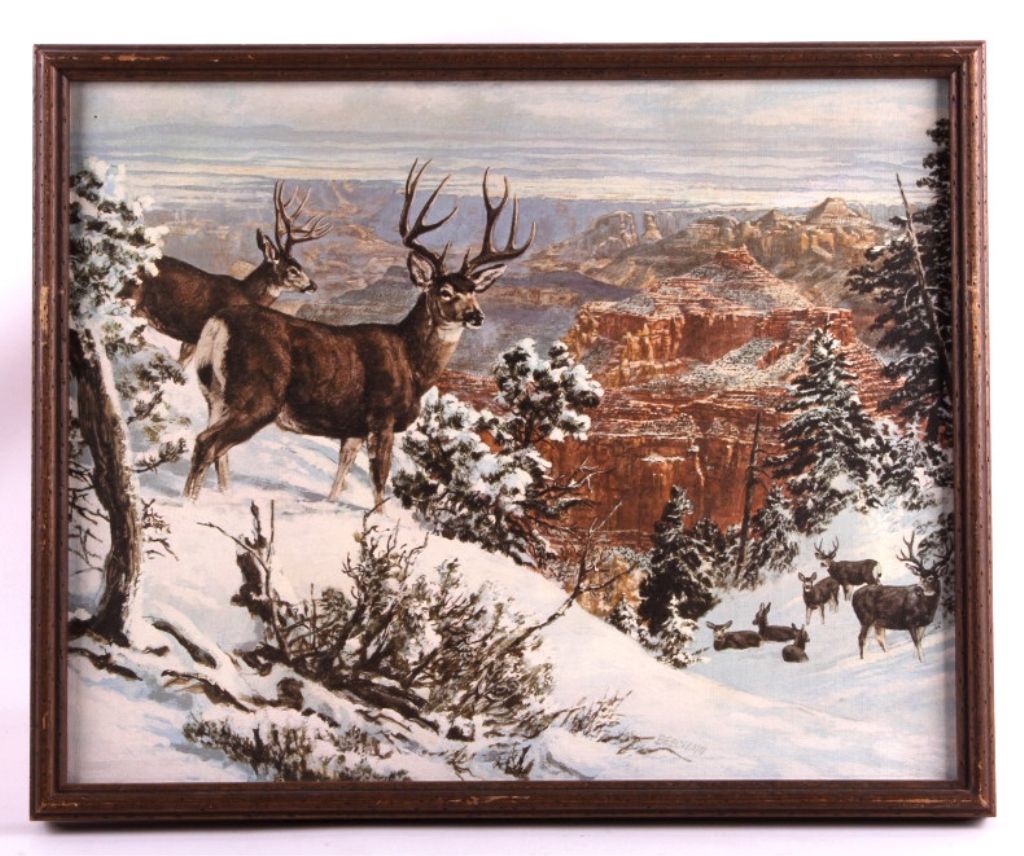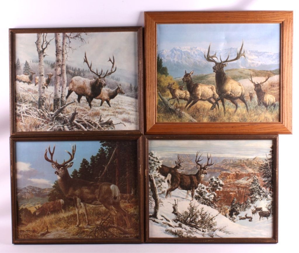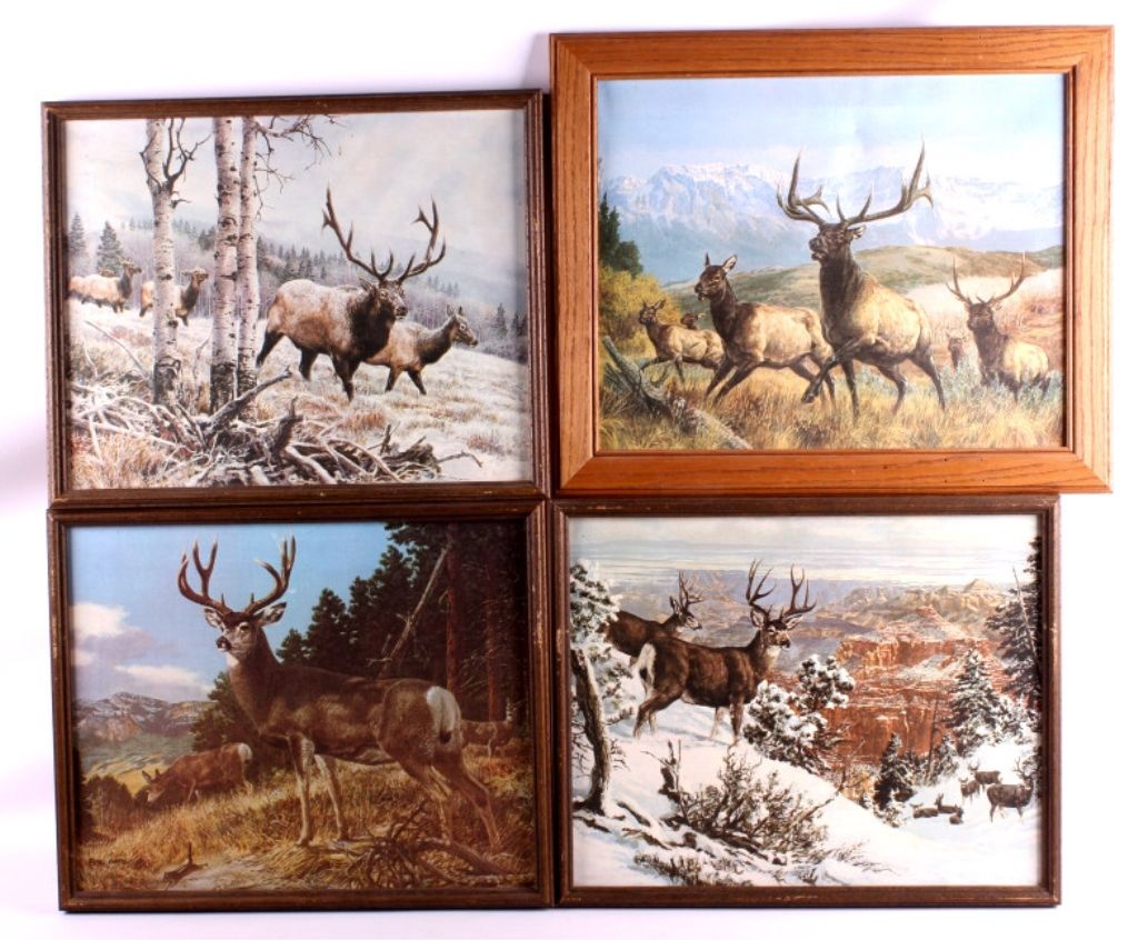 This is a collection of four Beecham wildlife  prints. Each of the prints in done on canvas  and has been framed. All the prints are  marked "Beecham". They are in good condition.  The frames measure 17.5" x 21".