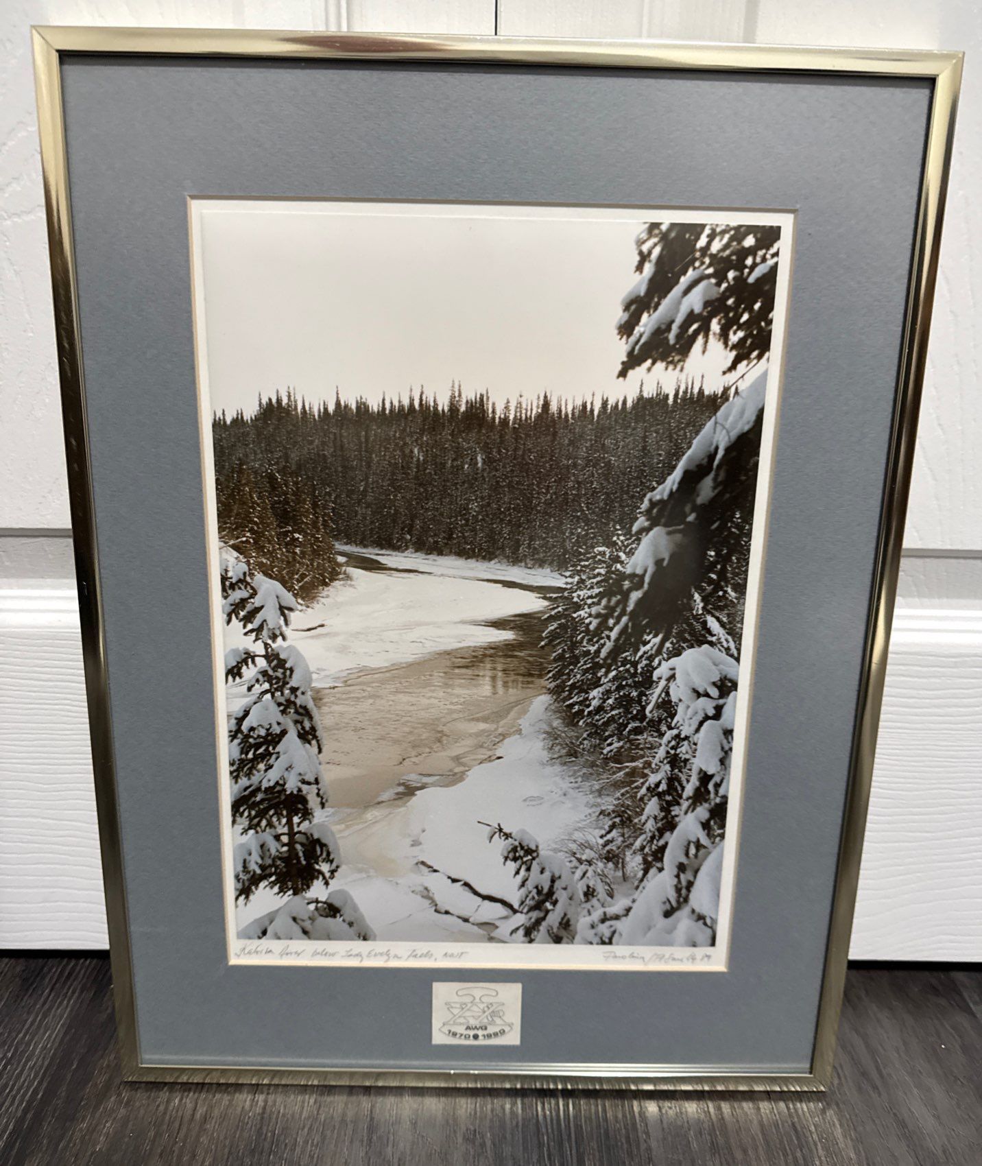 Framed Black & White Landscape with A River Flowing Through A Forest