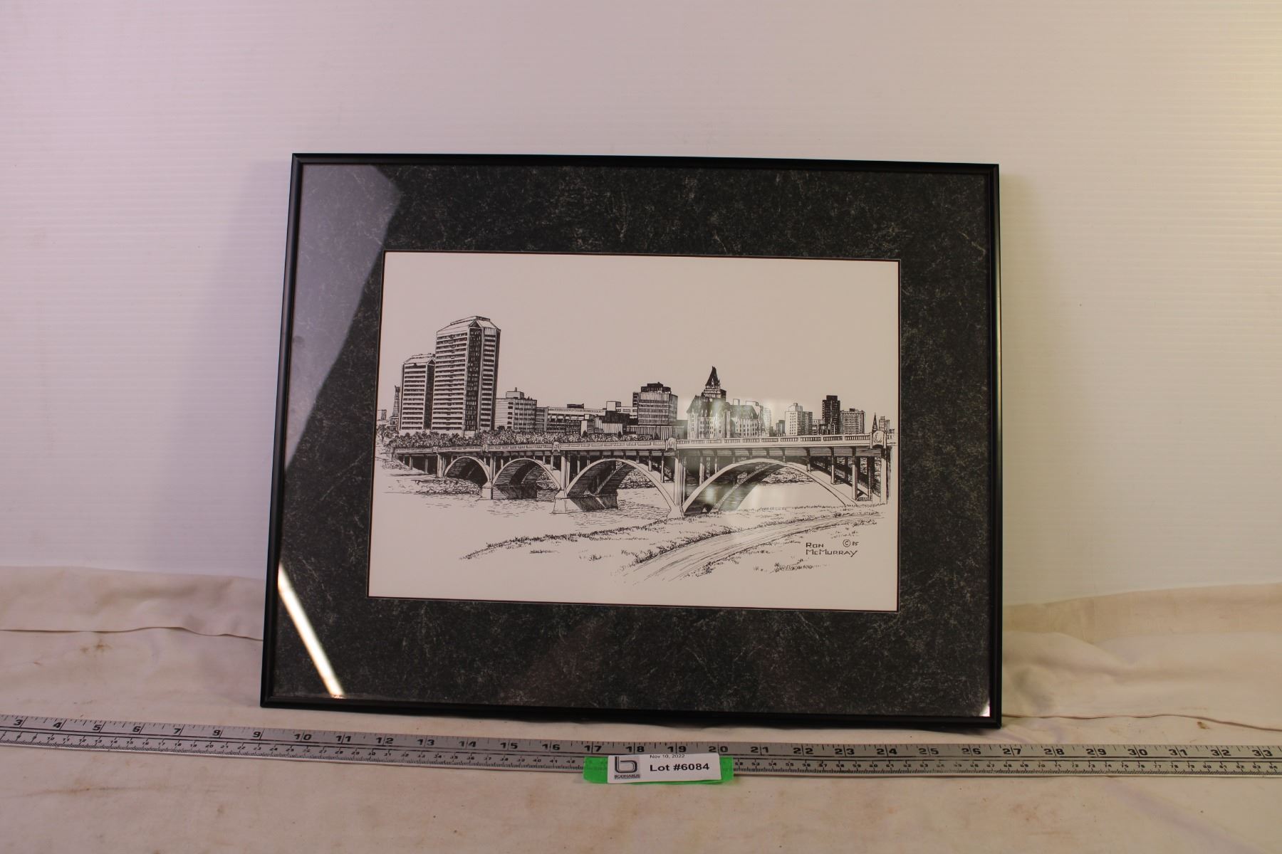 Framed Broadway Bridge Sketch Saskatoon Artist Ron McMurray (18x14)