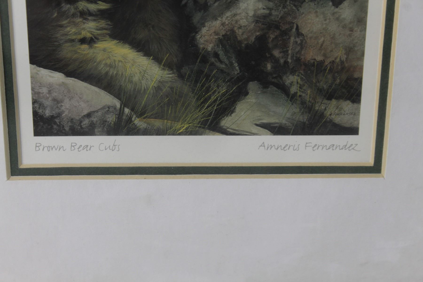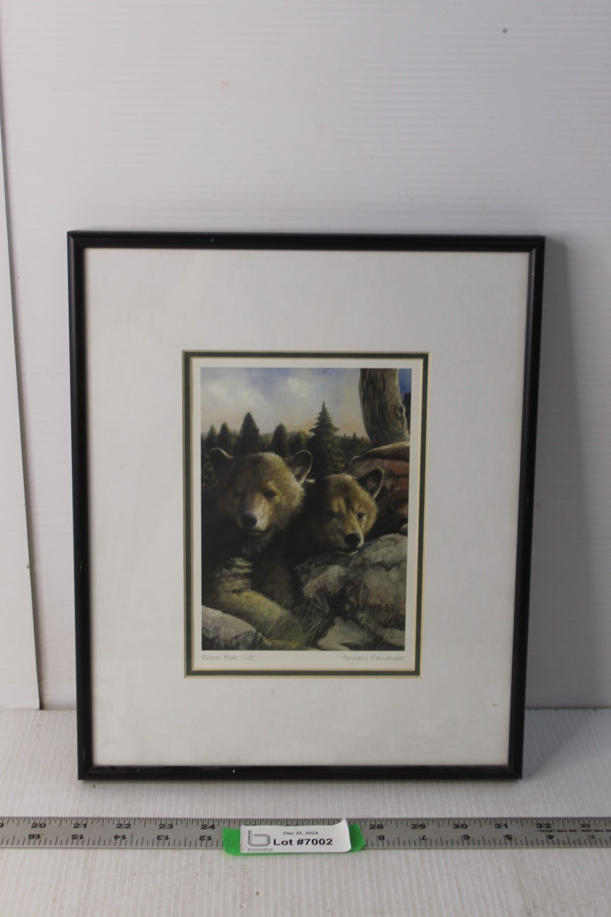 Framed 'Brown Bear Cubs' Drawing by Amneris Fernandez 13.5" x 11"