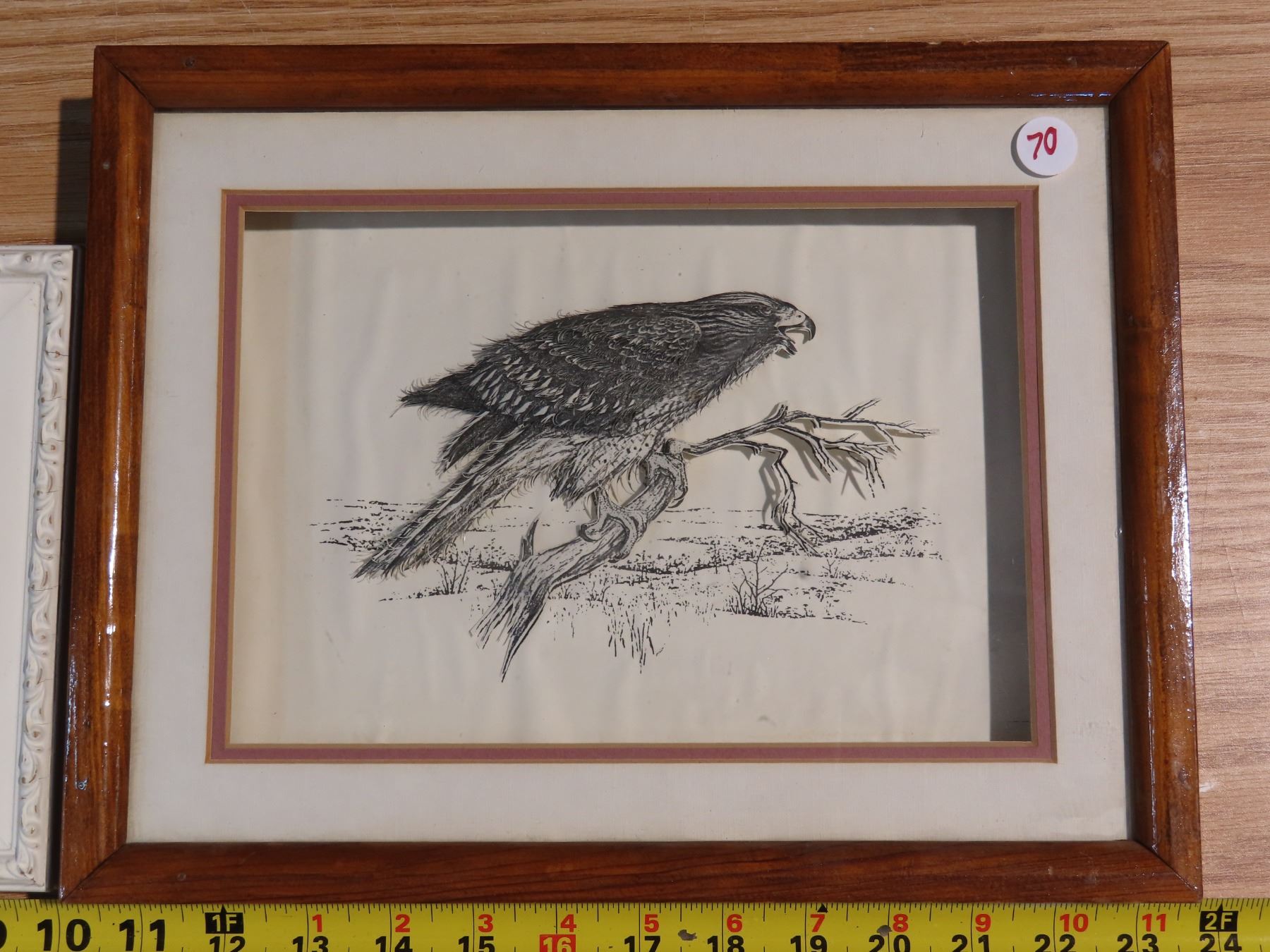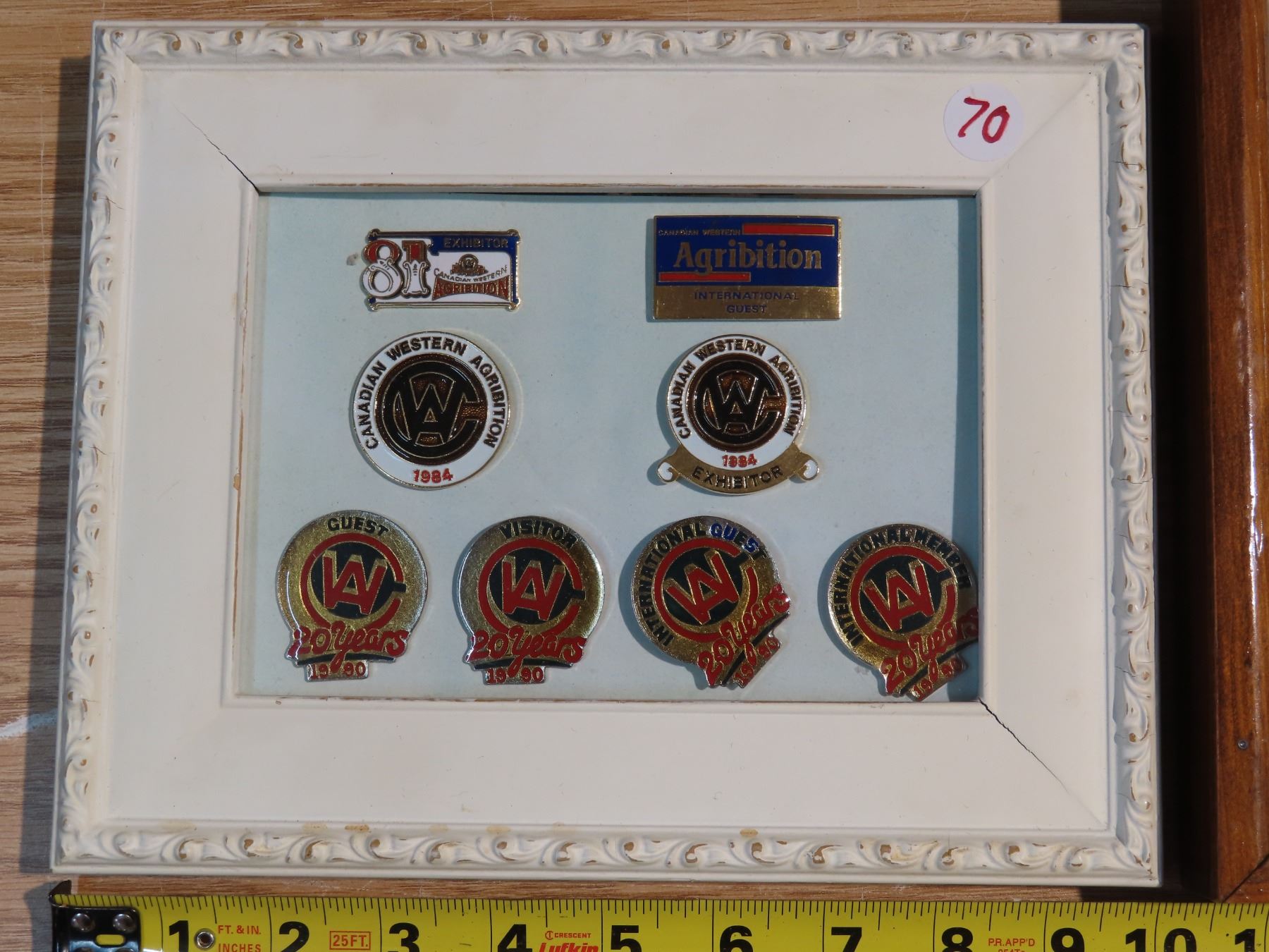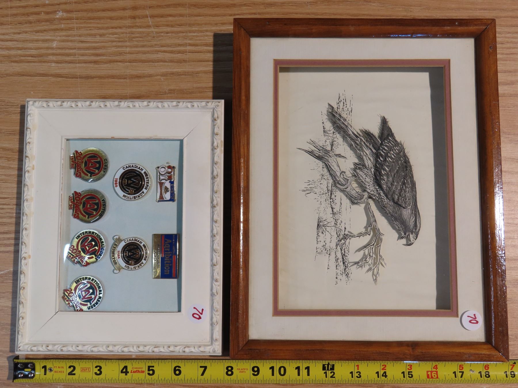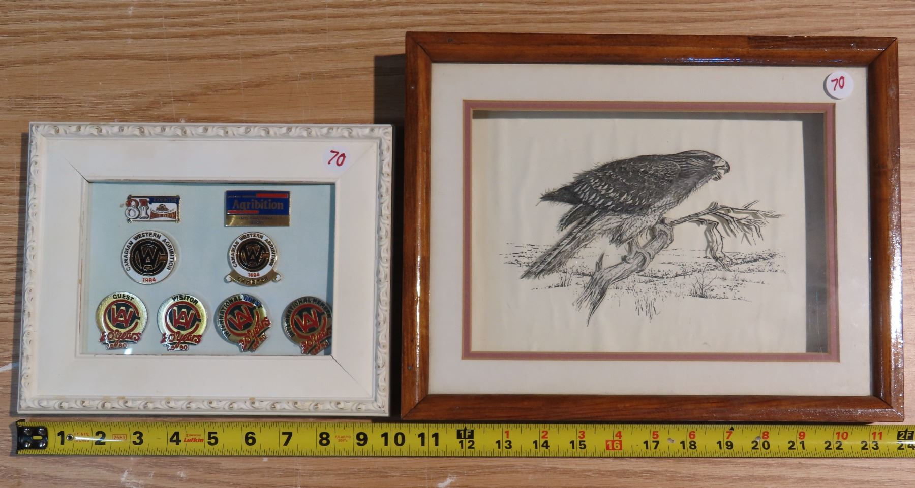 Framed Canadian Western Agribition Pins & 13"x10" Dimensional Paper Picture hawk with frame
