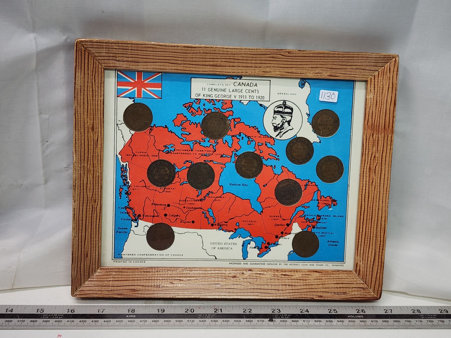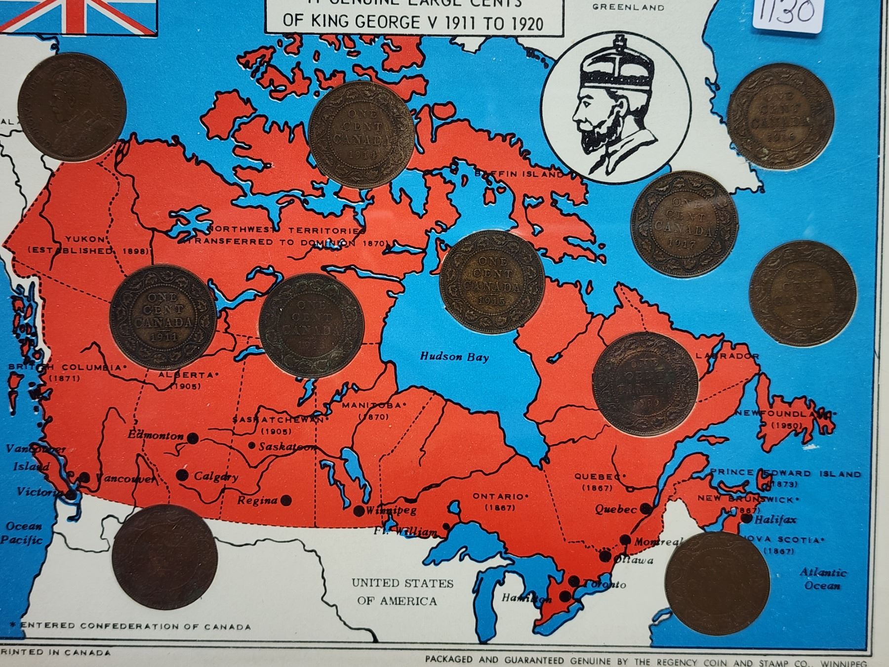 Framed, Canadian large cents - 1911-1920 - 11"X9"