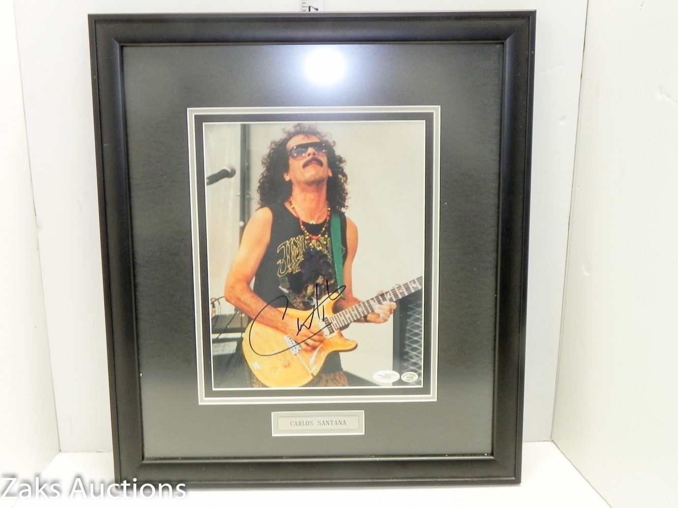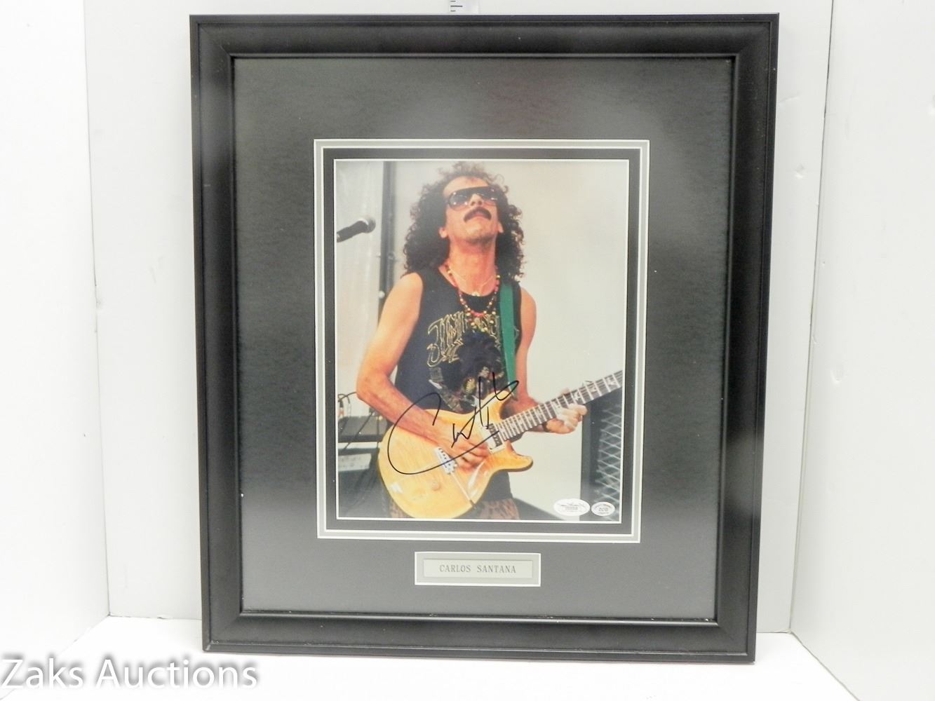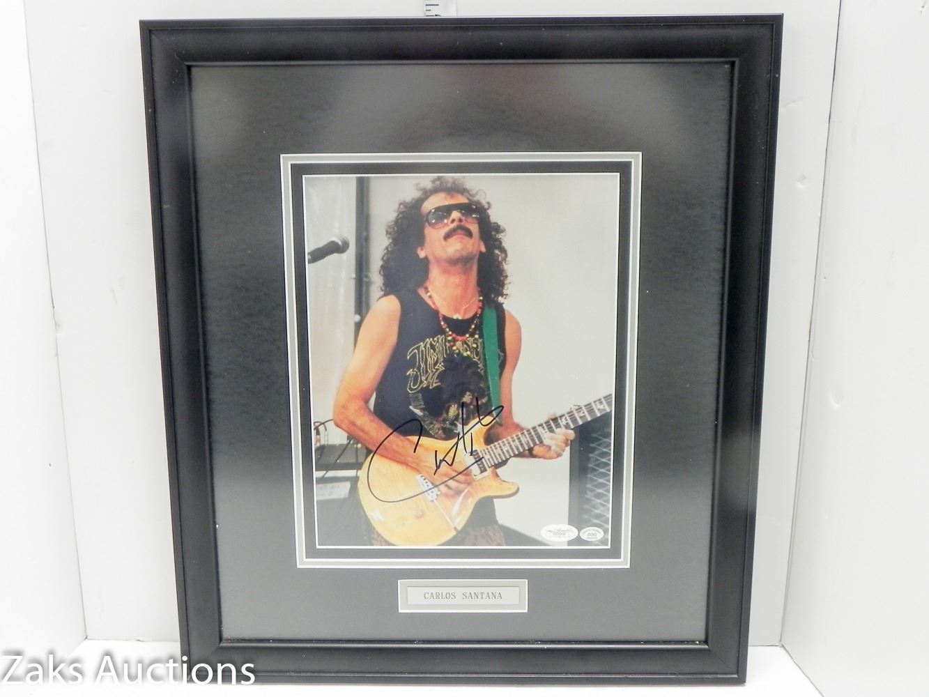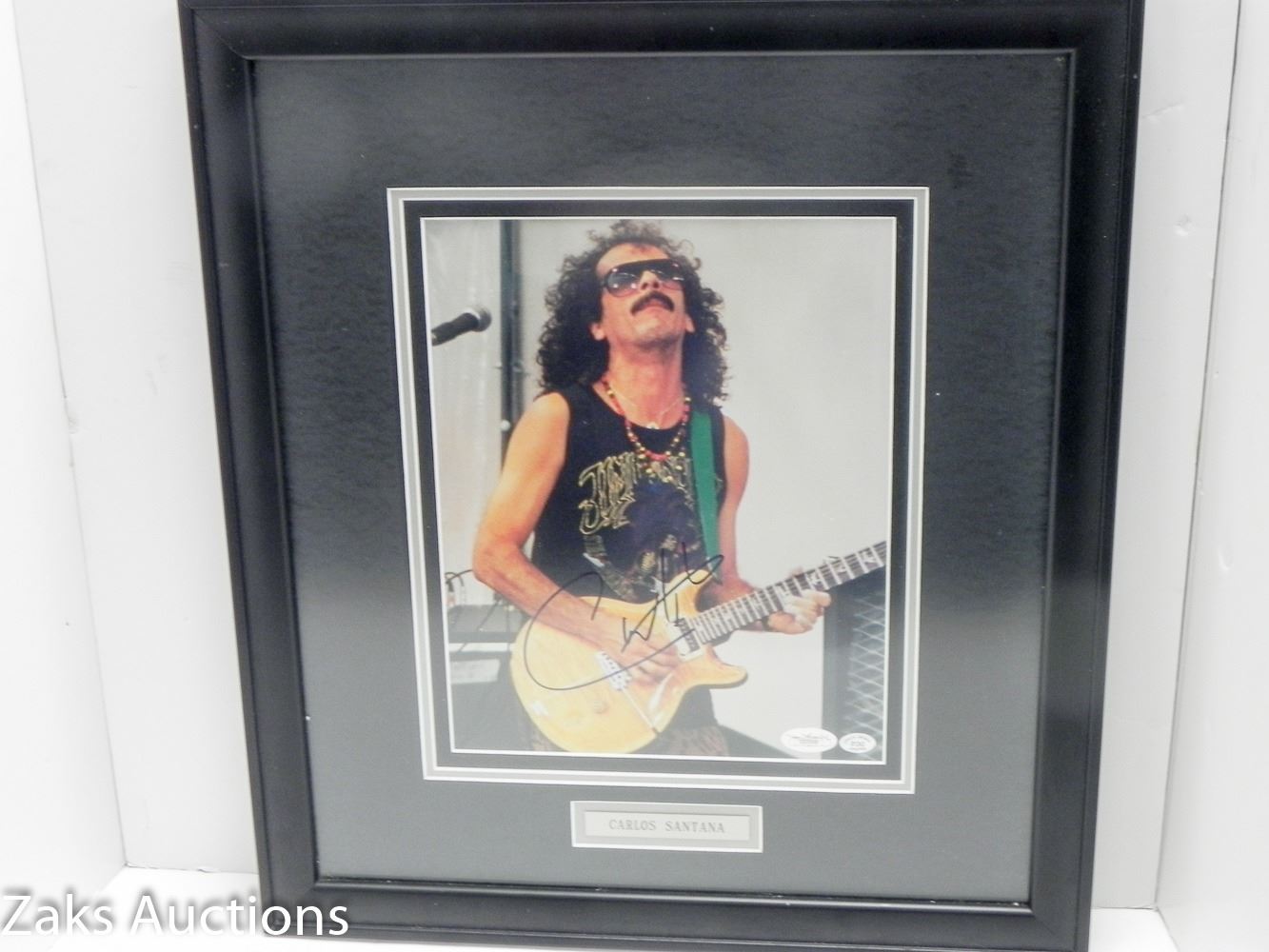 Framed Carlos Santana Autograph Picture with Authenticity. high bid subject to owners approval