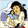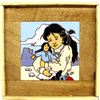Framed Ceramic Tile by Cici, tile measures 6''square, framed measures 10''square, depicts Native American Navajo Girl with Doll