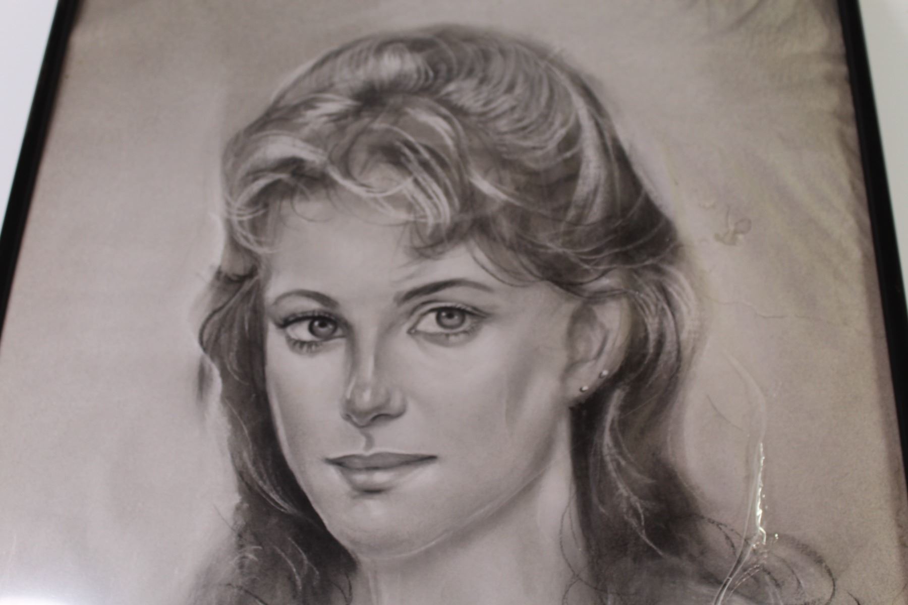 Framed Charcoal Drawing of Lady (24 1/2" x 18 1/2")
