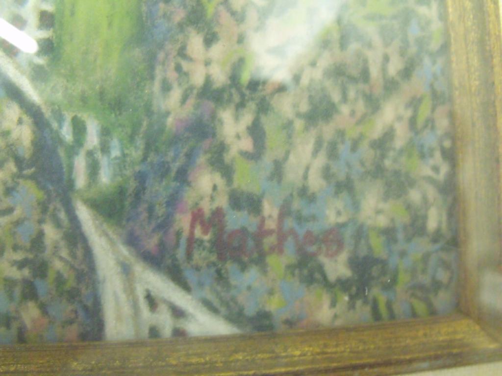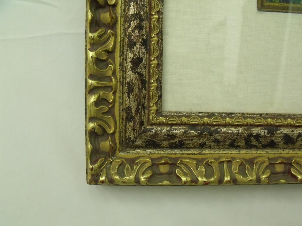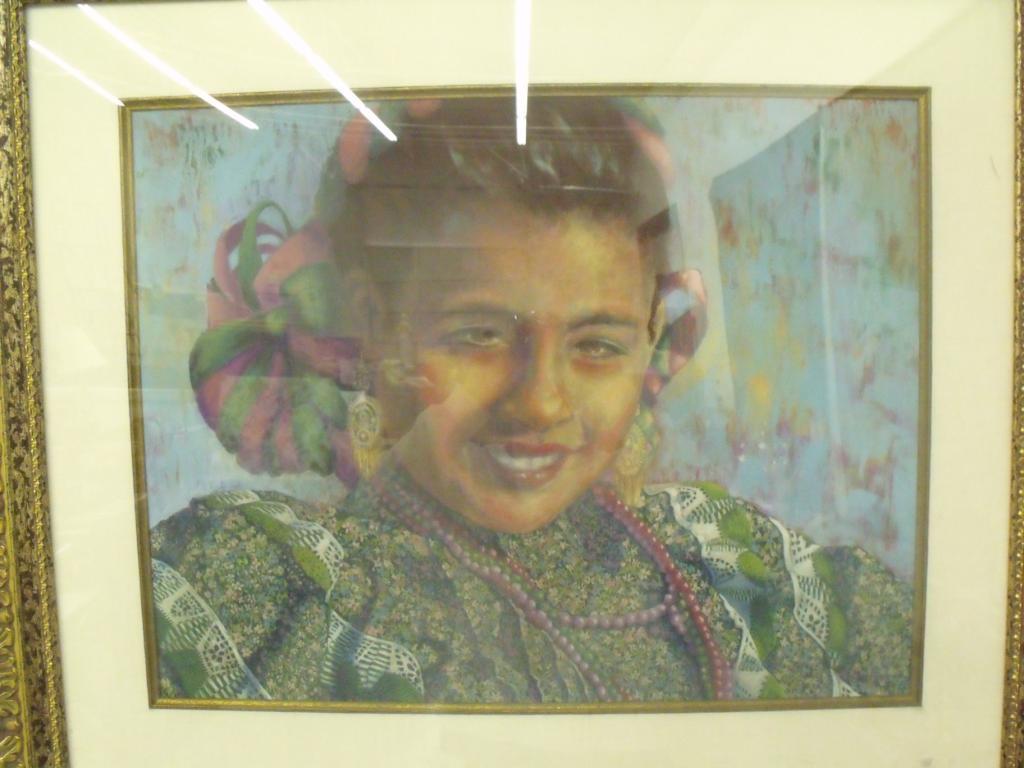 Framed Charcoal painting by Patricia Mathes "La Flor de la Fiesta" in an ornate gold frame, in good condition, Matted and inner wood framing trim 25"x19" painting size, signed.