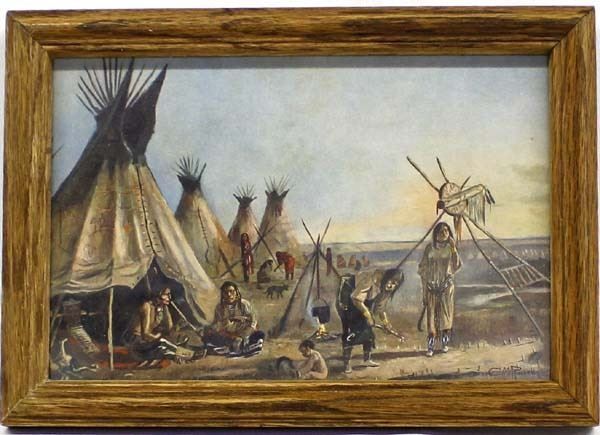Framed Charles M. Russell Print, visual measures 5.5'' x 8.5'', possibly a tear sheet or poster card, under glass