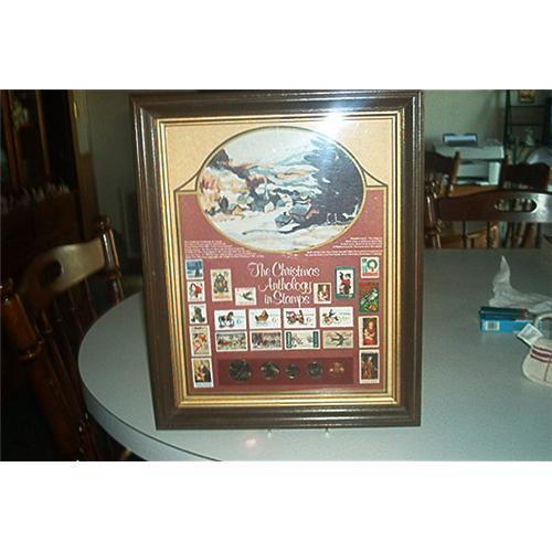 This framed United States Post Office Collection features Christmas Stamps from 1962 to 1975, along with 5 uncirculated coins. The Christmas Anthology in stamps includes most every stamp issued by the United States Post Office Commemorating the Holiday Season. The first of these special issues appeared in 1962 and have been issued at the rate of at least one per year since that time. In 1966 the first religious theme appeared which is a detail from Madonna and child with Angels by Hans Menling, a 15th century Flemish Master. The religious theme was so widely accepted that in latter years, details from masters such as RaPhael and Jan Van Eyck were also issued. Each stamp in it's own unique way embodies the spirit and excitement of this special season and the beauty of the Christmas Anthology in Stamps. This Framed Art, measures 16 inches long by 13 inches wide. Stamps and coins are in excellent condition. A wonderful item for stamp collectors and also coin collections.