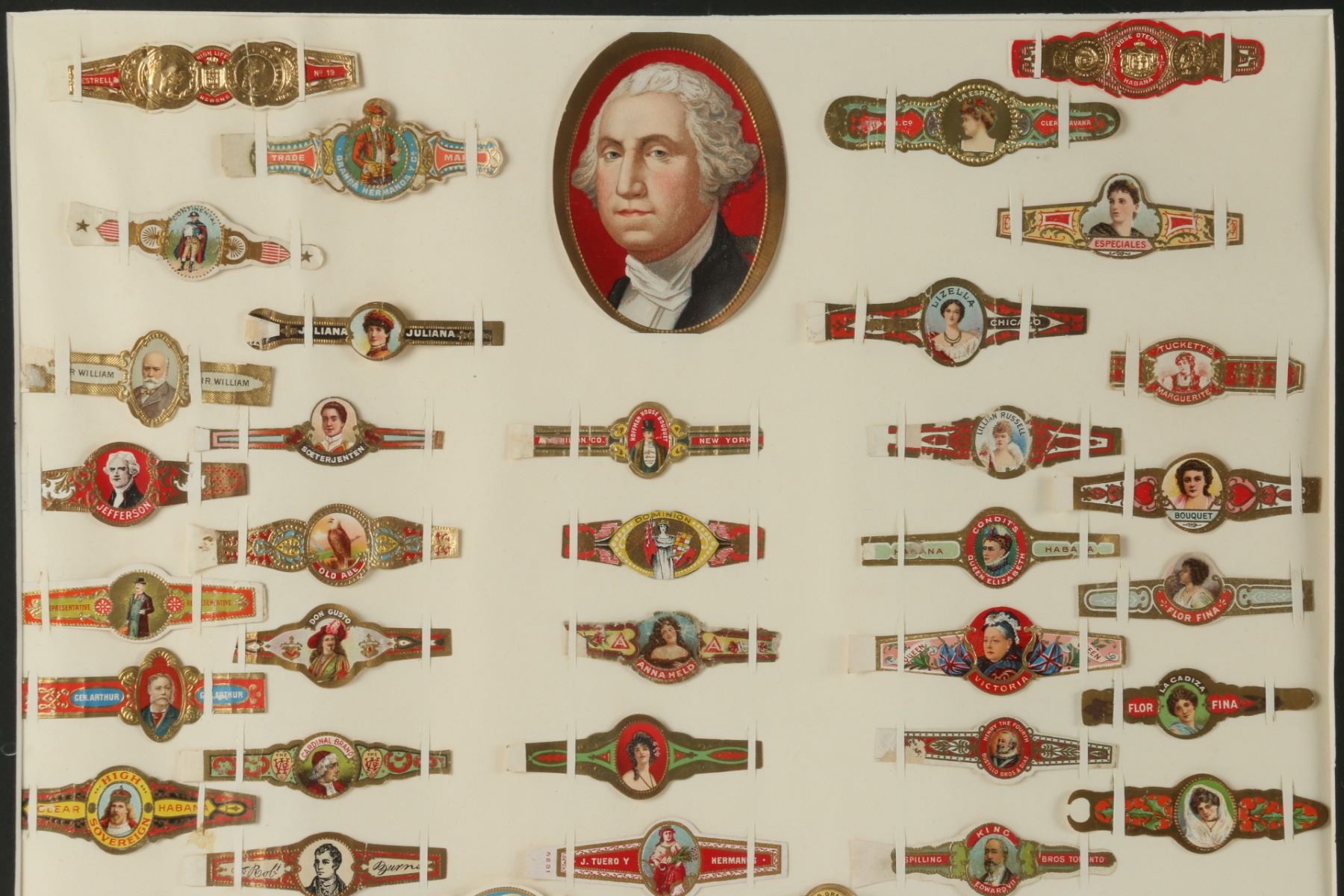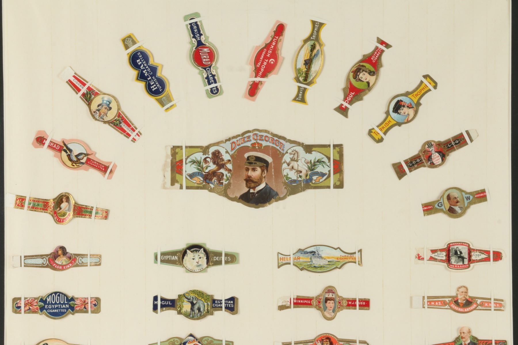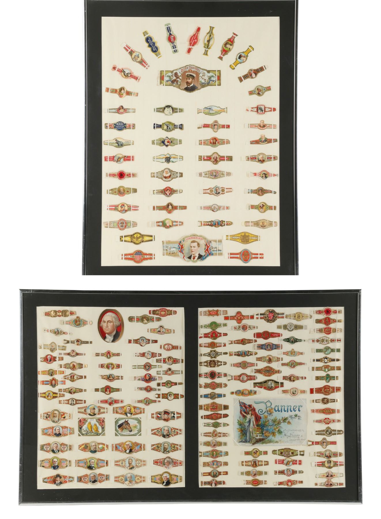 International assortment. Circa 1940-60. First 24" x 18". Second "32" x 20". Placed in, not glued to backing. $200-300.