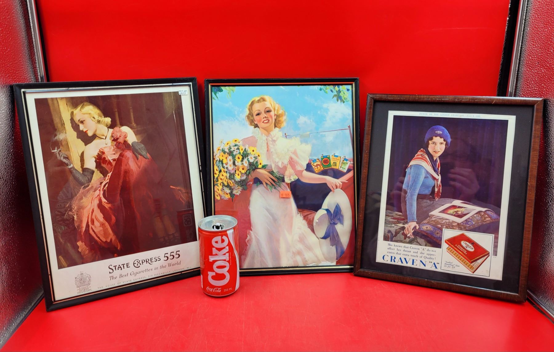 Framed Cigarette Advertising (Craven -A-, State Express 555, Etc.)