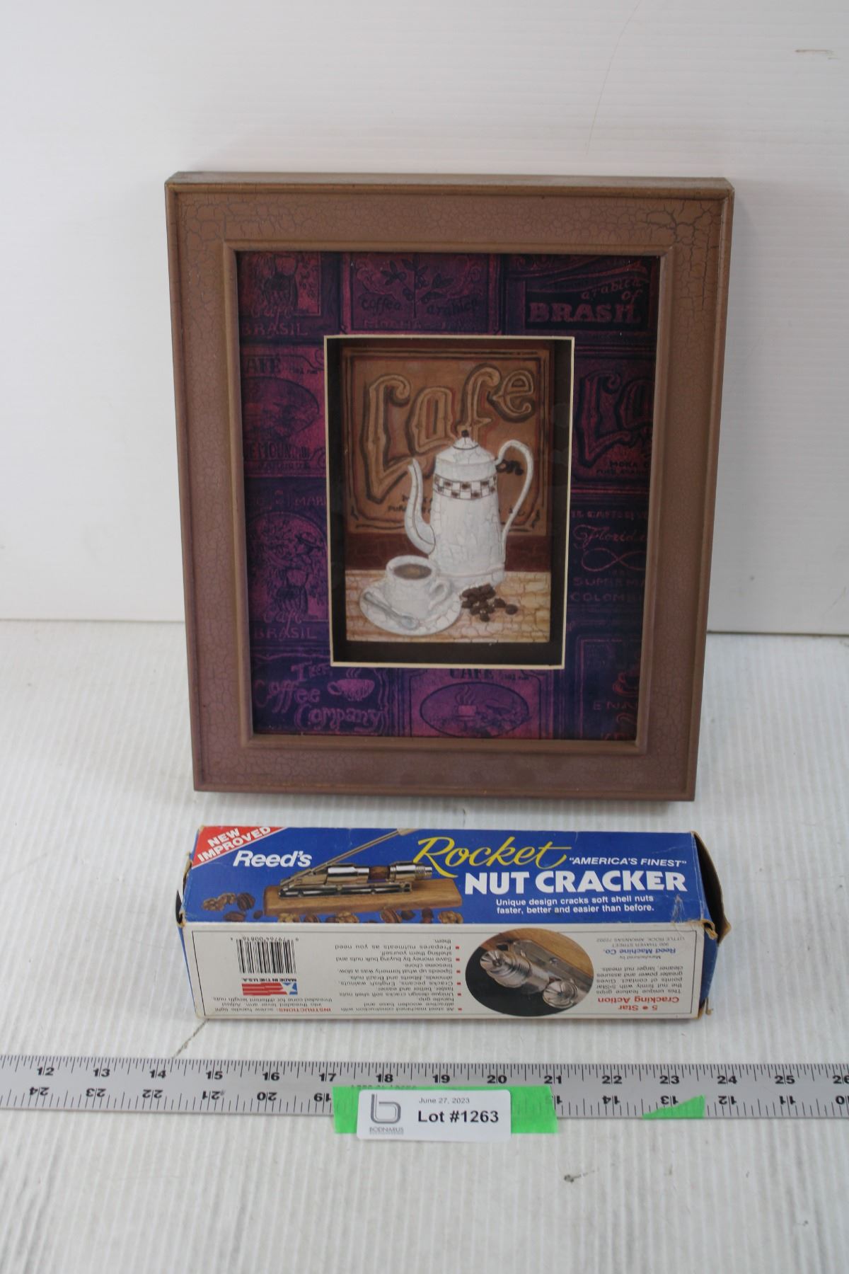 Framed Coffee Art and Rocket Nut Cracker in Box - 10" x 12" (NIB)