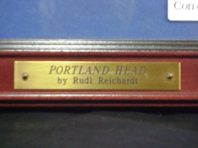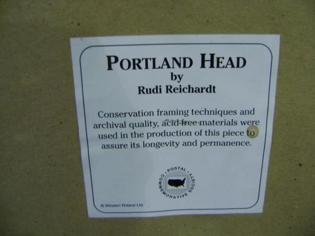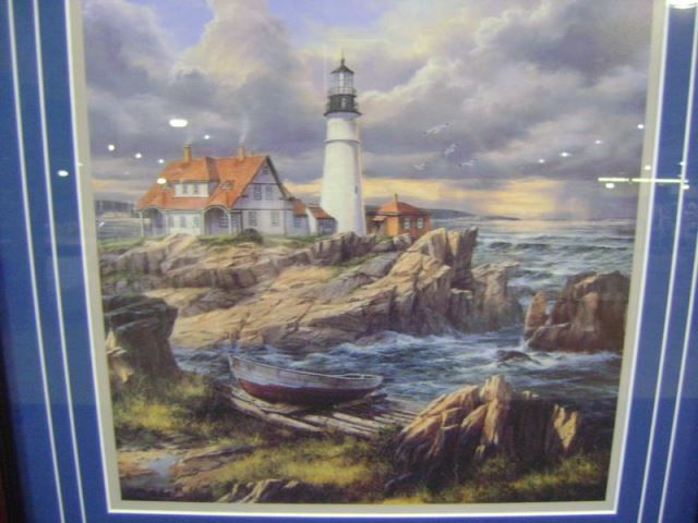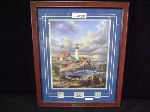 Framed Collector's Print of Lighthouse by Reichardt w/ (3) Collector's Stamps "Portland Head"